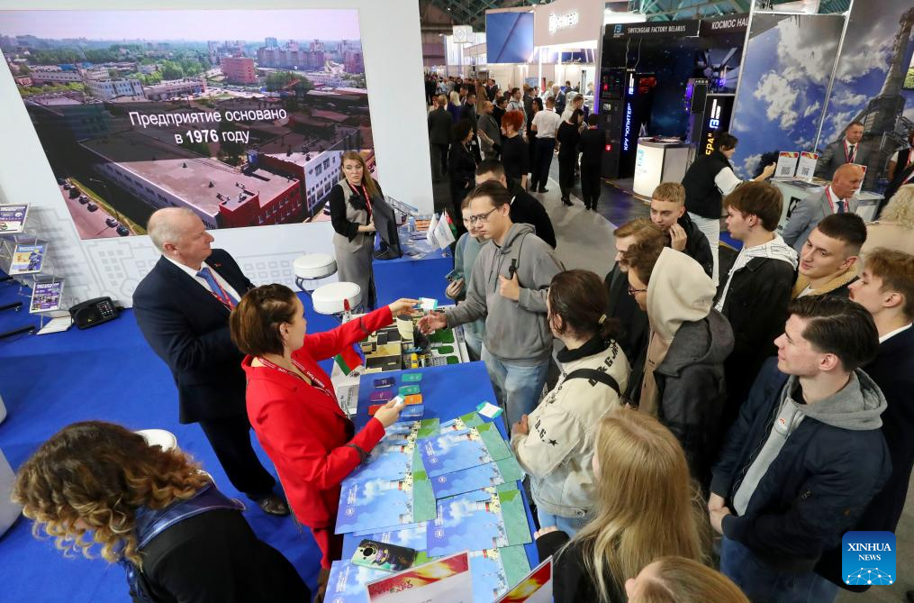 People visit an exhibition during the Belarusian Energy and Ecology Forum in Minsk, Belarus, Oct. 15, 2024.