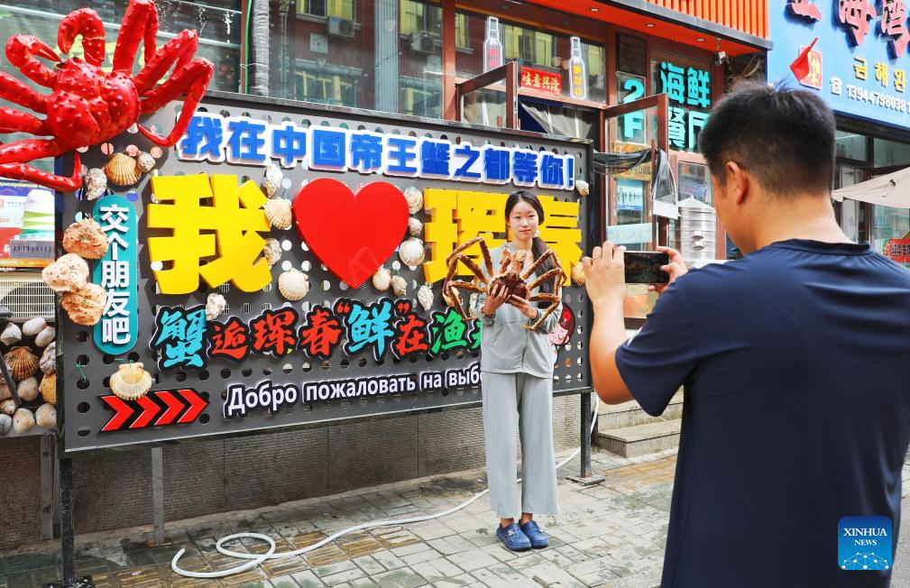 Russian king crabs have not only enriched Chinese people's diets but also promoted cooperation and development in the border areas between China and Russia. At the Northeast Asia Cross-Border E-commerce Industrial Park in Hunchun, a king crab shop covering an area of over 1,000 square meters opened earlier this year. Wang Hai, the shop's executive, stated that they have established deep cooperation with the Russian Crab Group to provide high quality king crabs. Since its opening, the shop has attracted many customers, with a peak daily reception of more than 10,000 visitors. (Xinhua/Cao Yang)