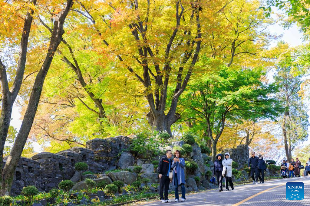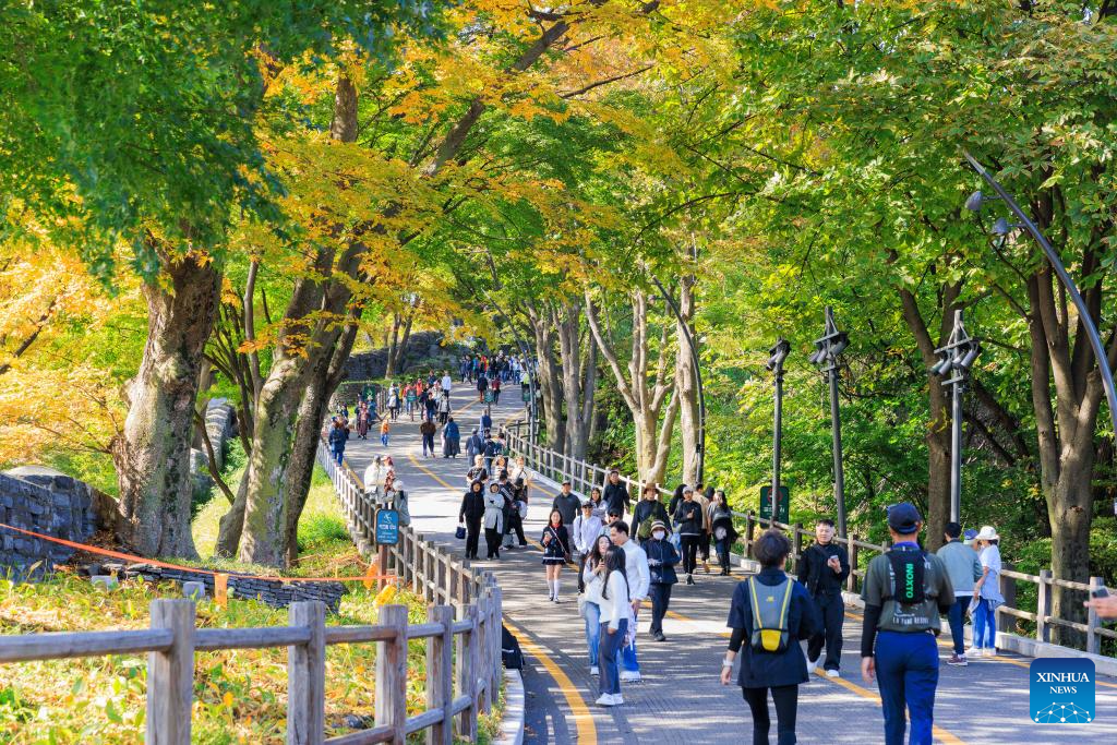 People enjoy the autumn scenery at Namsan Park in Seoul, South Korea, Oct. 20, 2024. (Photo by JINTAEK/Xinhua)
