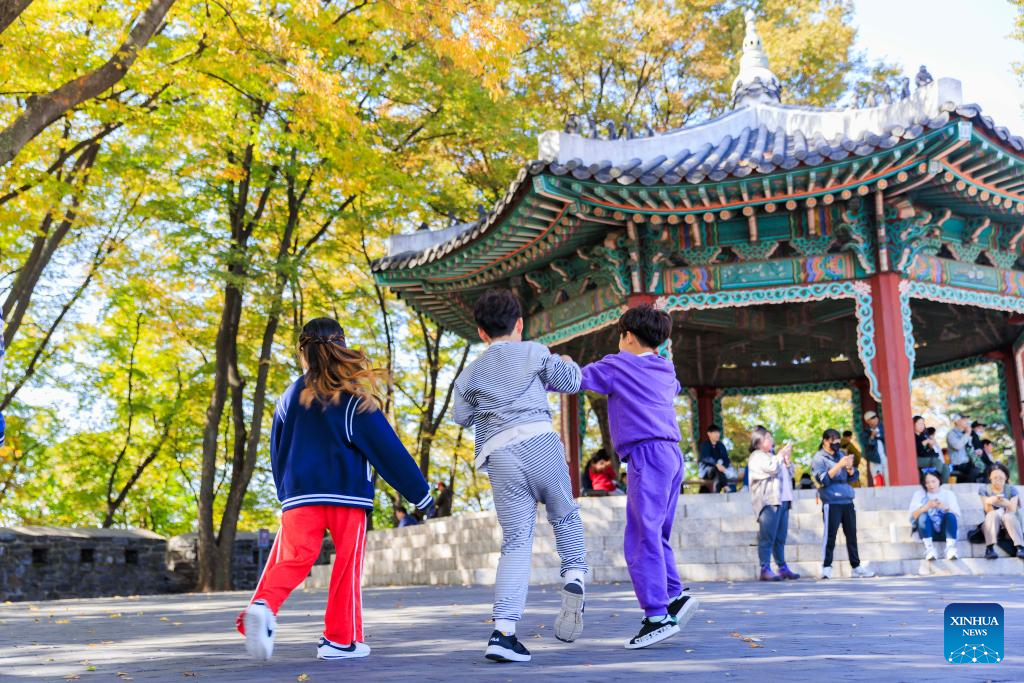 Children play games at Namsan Park in Seoul, South Korea, Oct. 20, 2024. (Photo by JINTAEK/Xinhua)