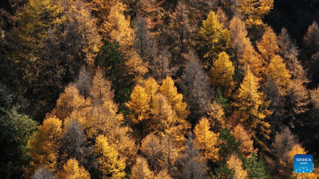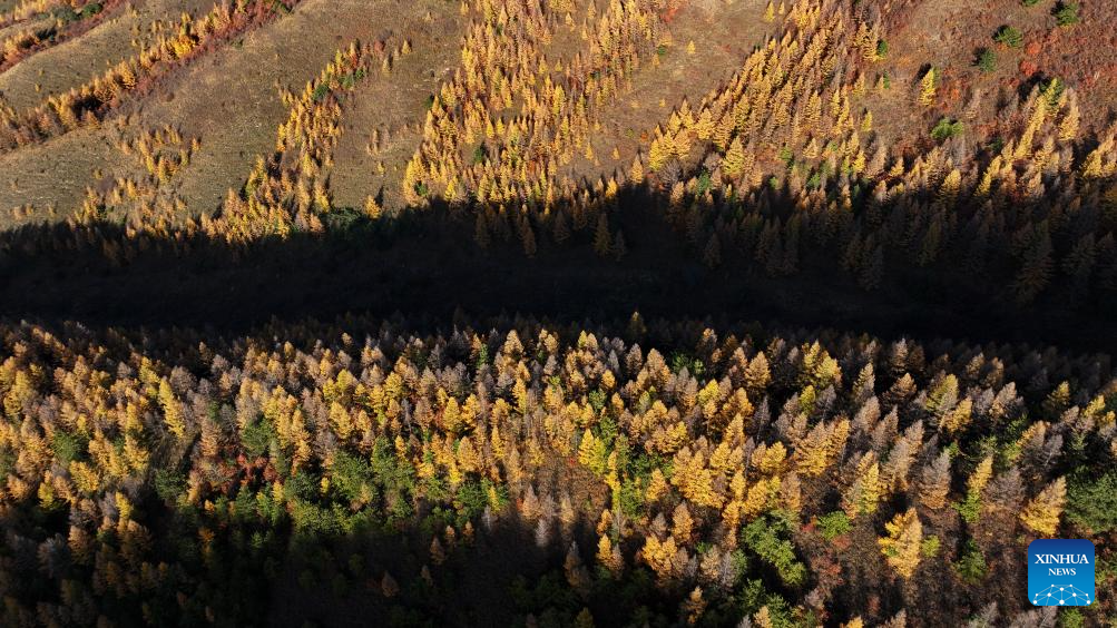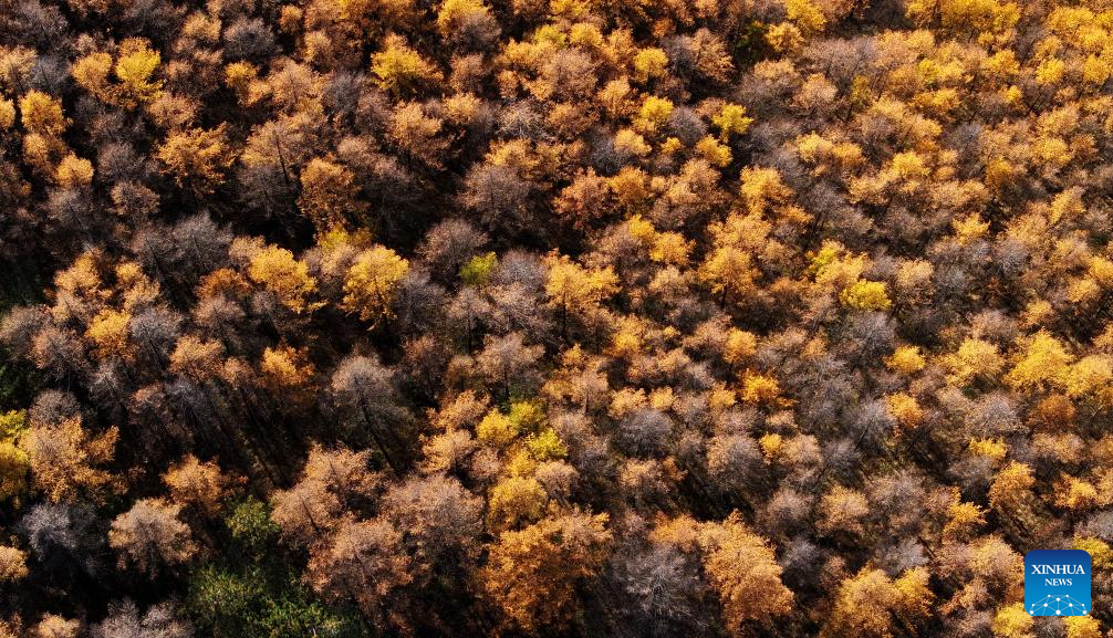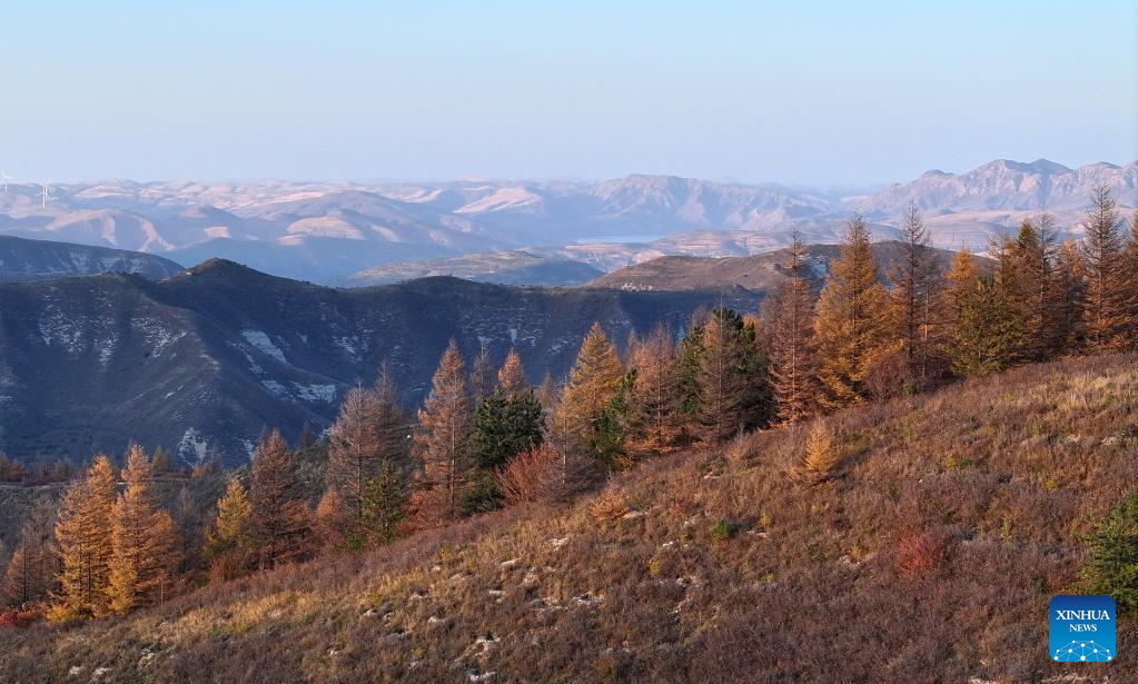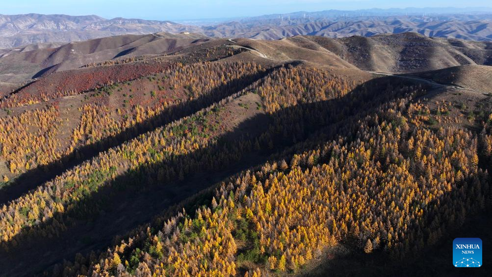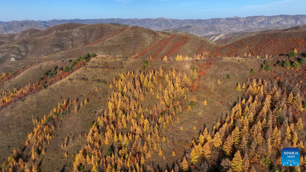 An aerial drone photo taken on Oct. 20, 2024 shows the autumn scenery in Xiji County of Guyuan City, northwest China's Ningxia Hui Autonomous Region. (Xinhua/Yang Zhisen)