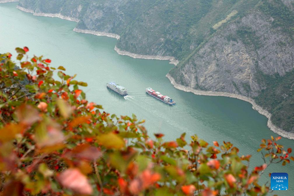 This photo taken on Oct. 10, 2024 shows the autumn scenery at the Wuxia Gorge, one of the Three Gorges on the Yangtze River, in Wushan County, southwest China's Chongqing Municipality. (Photo by Wang Zhonghu/Xinhua)
