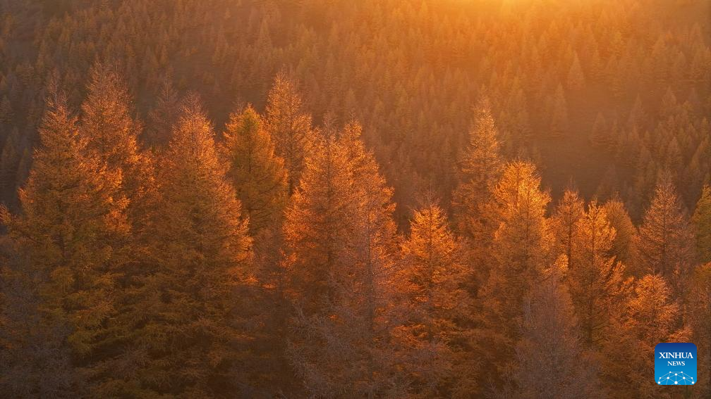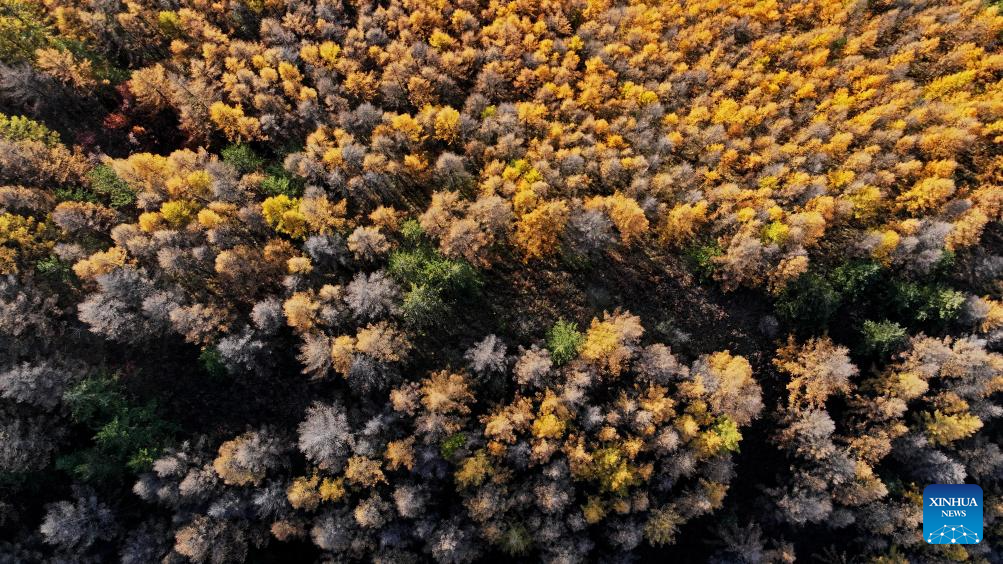 A drone photo taken on Oct. 20, 2024 shows autumn scenery in Niangniangzhuang Town, Zunhua City of north China's Hebei Province. (Photo by Liu Mancang/Xinhua)
