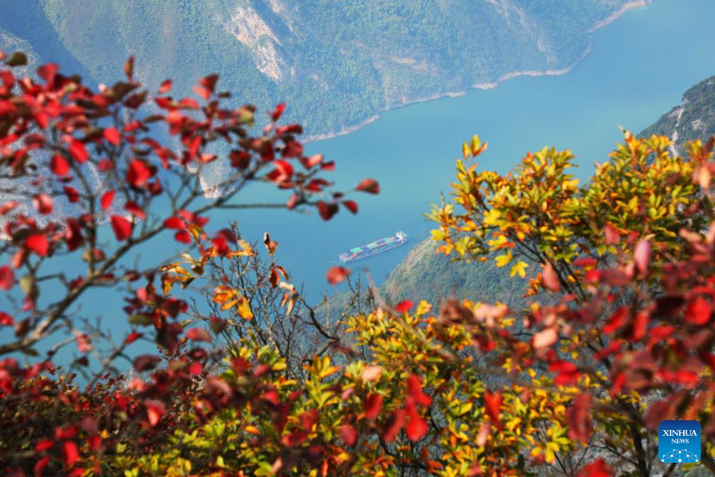 This photo taken on Oct. 30, 2024 shows the autumn scenery at the Wuxia Gorge, one of the Three Gorges on the Yangtze River, in Wushan County, southwest China's Chongqing Municipality. (Photo by Wang Zhonghu/Xinhua)
