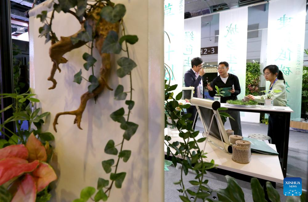 Visitors exchange ideas at an enterprise's booth showcasing soilless planting technology at an exhibition of 2024 World Cities Day China Observance and 2024 SDG Cities Global Conference in Shanghai, east China, Oct. 31, 2024. World Cities Day emerged from the 2010 Shanghai World Expo, specifically the Shanghai Declaration, which advocated for the idea of "Better City, Better Life." Celebrated annually on Oct. 31, the day promotes international urban dialogue.