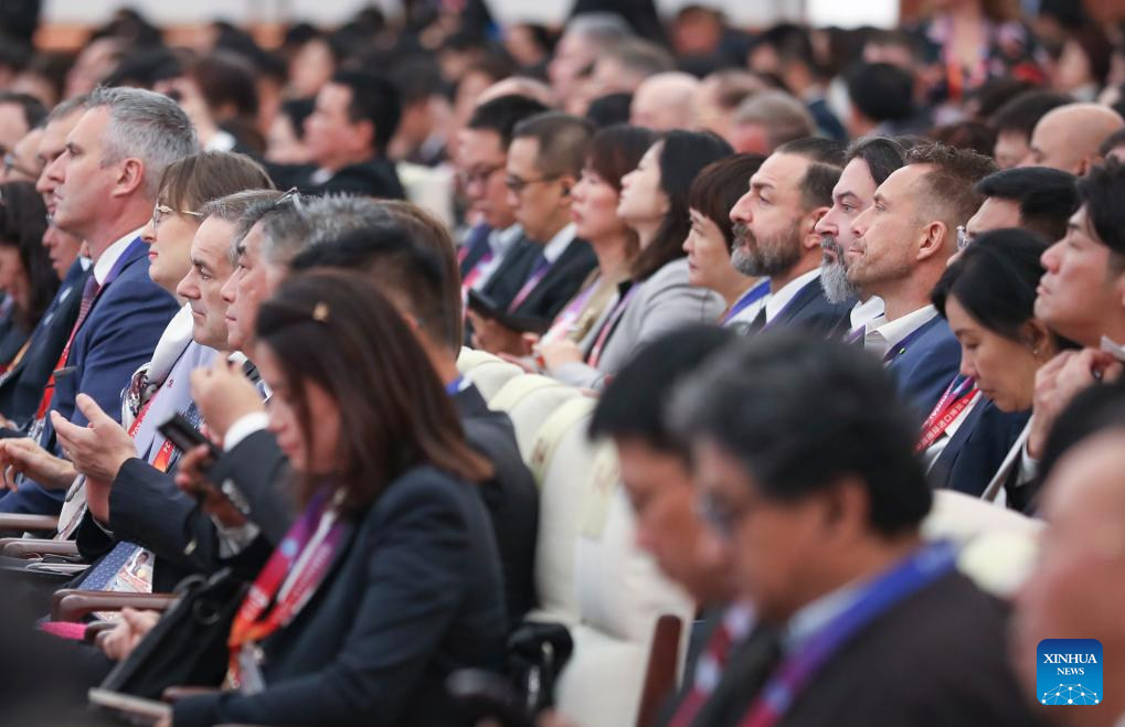 Guests attend the opening ceremony of the seventh China International Import Expo (CIIE) and the Hongqiao International Economic Forum at the National Exhibition and Convention Center (Shanghai) in east China's Shanghai, Nov. 5, 2024. (Xinhua/Du Xiaoyi)