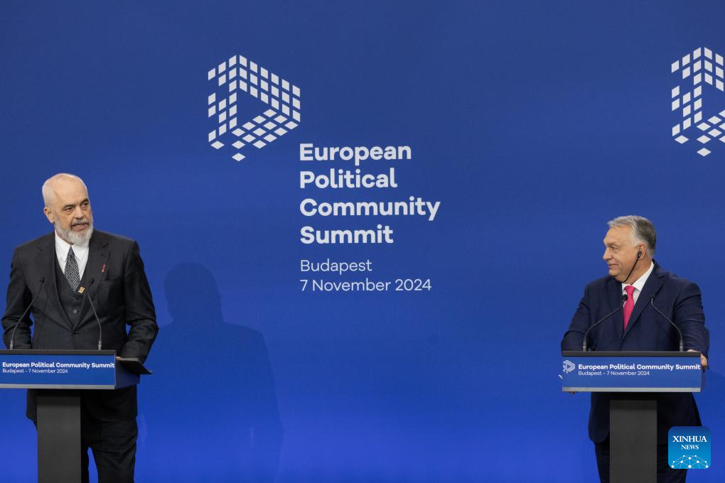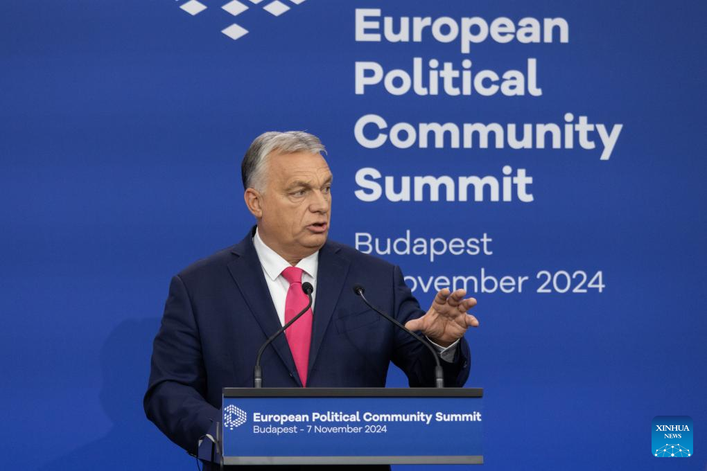 The fifth European Political Community (EPC) summit is held in Budapest, Hungary on Nov. 7, 2024. European leaders have agreed on the need for Europe to assume greater responsibility for its own security rather than relying solely on the United States, Hungarian Prime Minister Viktor Orban said Thursday following the fifth European Political Community (EPC) summit.(Xinhua/Liu Yuxuan)