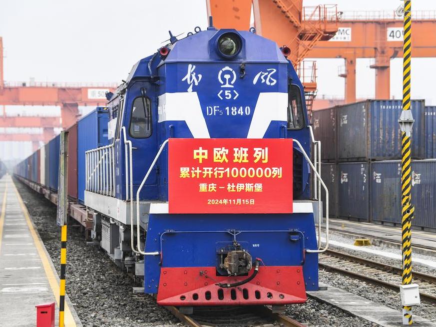 The 100,000th China-Europe freight train departed from southwest China's Chongqing on Friday morning, a significant milestone in the development of the service that facilitates economic and trade exchanges between China and Europe. #GLOBALink