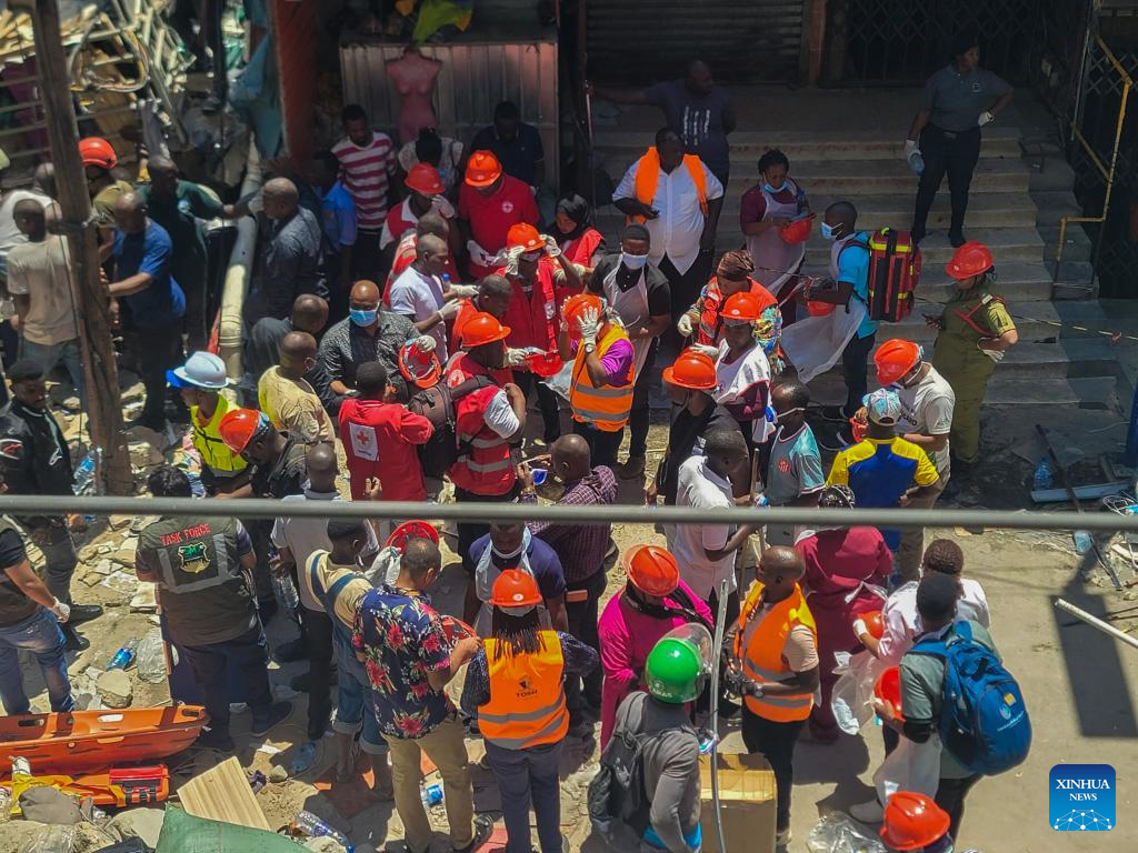 DAR ES SALAAM, Nov. 16 (Xinhua) -- Tanzanian Prime Minister Kassim Majaliwa announced on Saturday that one person was killed and 28 others were injured when a four-story building collapsed in the Kariakoo suburb of Dar es Salaam, the country's port city.