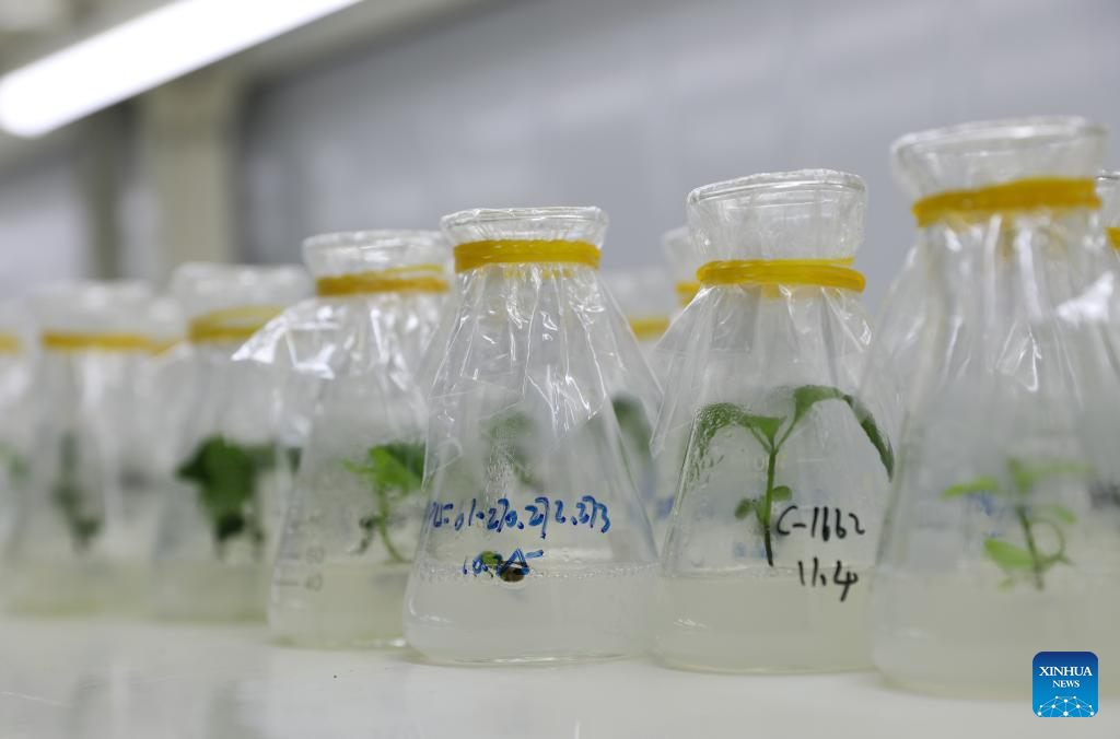 A staff member checks pepper plants at the vegetable germplasm rapid propagation plant factory of Hunan Xiangyan Seed Industry Co., Ltd. in Changsha, central China's Hunan Province, Nov. 25, 2024. Hunan, a main pepper planting area in China, has been advancing the application of smart greenhouses in pepper planting industry through combined efforts. (Xinhua/Wang Jingqiang)