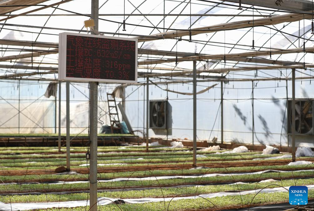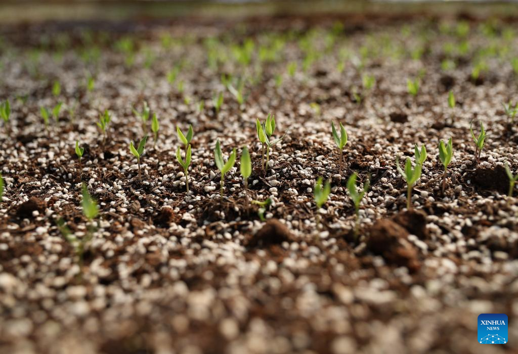 This photo shows pepper seedlings in the Zhangshugang pepper space-mutation breeding and scientific cultivation base of Yangque Lake in Zhangshu Town of Yueyang City, central China's Hunan Province, Nov. 26, 2024. Hunan, a main pepper planting area in China, has been advancing the application of smart greenhouses in pepper planting industry through combined efforts. (Xinhua/Wang Jingqiang)