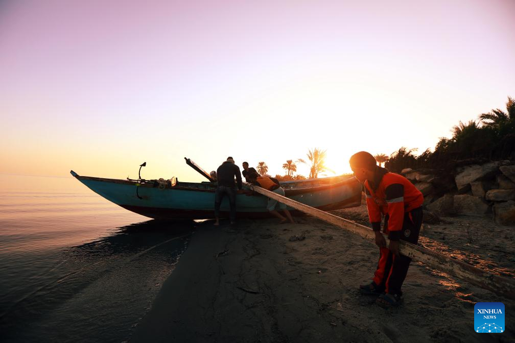 Fishermen prepare to fish on Lake Qarun in Fayoum province, Egypt, on Nov. 23, 2024. (Xinhua/Ahmed Gomaa)