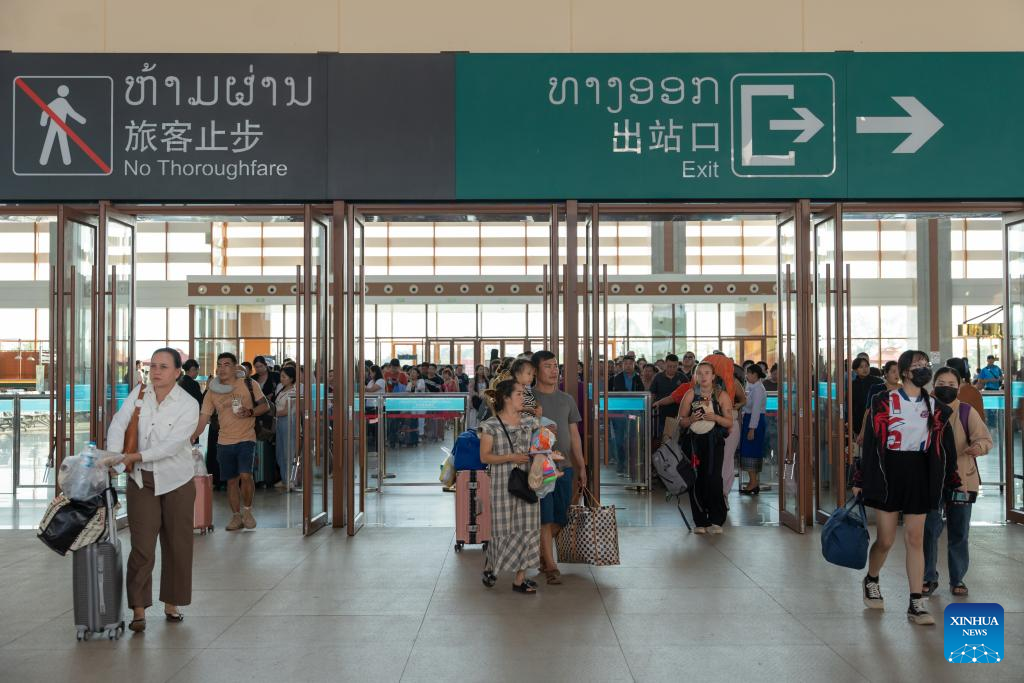 Passengers leave the Vientiane Station of the China-Laos Railway in Vientiane, Laos, Dec. 2, 2024. The China-Laos Railway has emerged as a catalyst for regional economic growth three years after its launch, China's railway operator said on Tuesday.