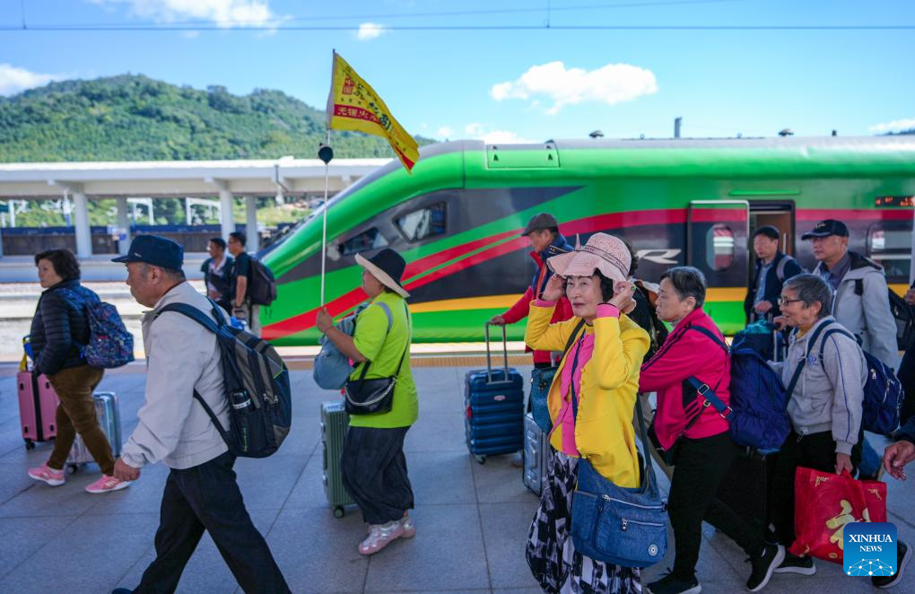 Passengers arrive at Mohan Railway Station of the China-Laos Railway in southwest China's Yunnan Province, Dec. 3, 2024. The China-Laos Railway has emerged as a catalyst for regional economic growth three years after its launch, China's railway operator said on Tuesday.