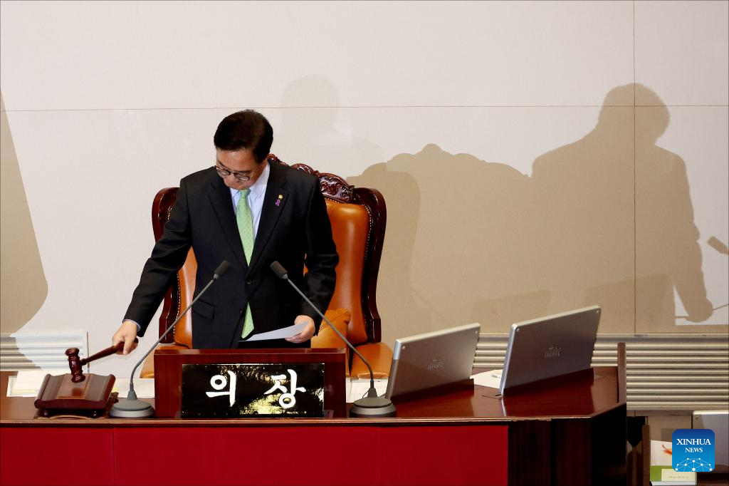 South Korea's National Assembly Speaker Woo Won-shik ends the voting process on President Yoon Suk-yeol's impeachment motion in Seoul, South Korea, Dec. 7, 2024. South Korea's parliament on Saturday failed to pass President Yoon Suk-yeol's impeachment motion as most of ruling People Power Party lawmakers refused to vote on it. (Xinhua)