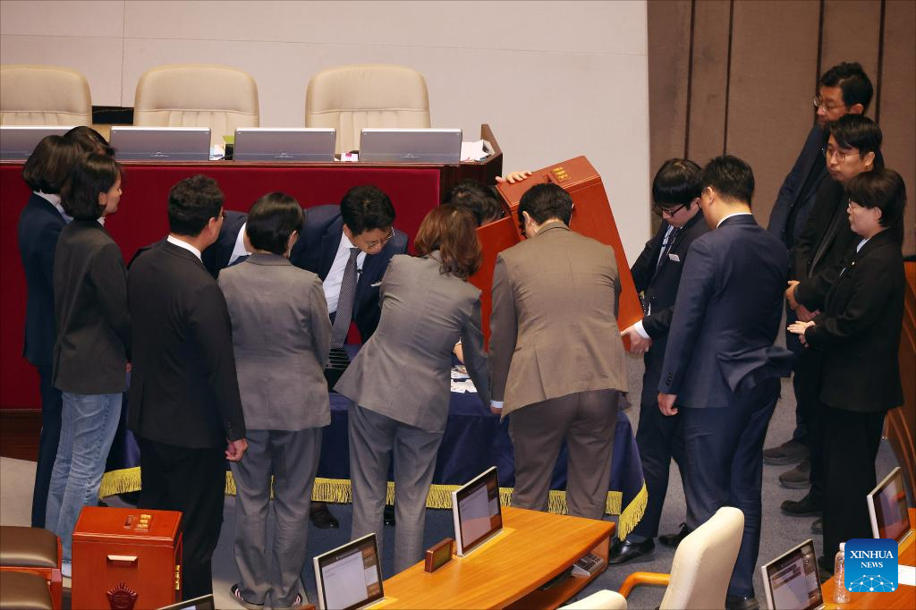 SEOUL, Dec. 7 (Xinhua) -- South Korea's parliament on Saturday failed to pass President Yoon Suk-yeol's impeachment motion as most of ruling People Power Party lawmakers refused to vote on it.