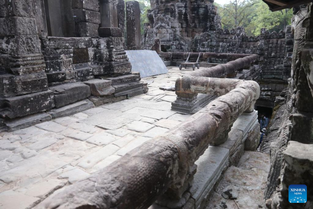 PHNOM PENH, Dec. 19 (Xinhua) -- Restoration work on the third terrace at the southwest corner of Bayon Temple in Cambodia's Angkor Archaeological Park has been completed successfully, the APSARA National Authority said in a news release on Thursday.
