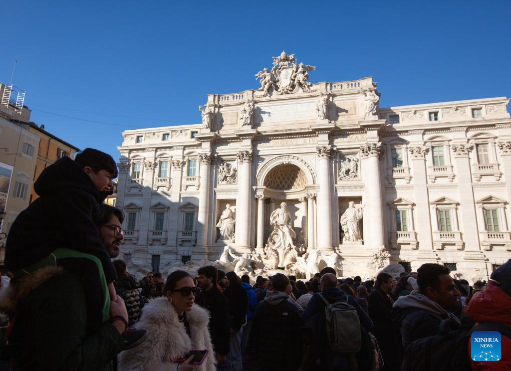 People visit the Trevi Fountain in Rome, Italy, Dec. 30, 2024. (Xinhua/Li Jing)