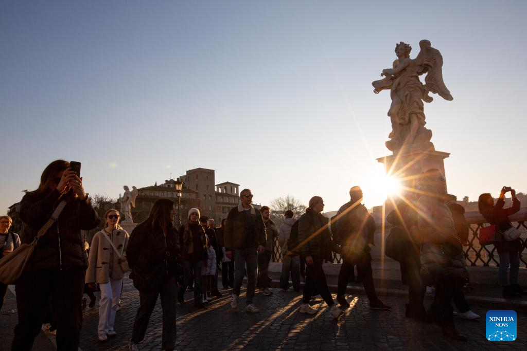 People visit the Ponte Sant'Angelo in Rome, Italy, Dec. 30, 2024. (Xinhua/Li Jing)