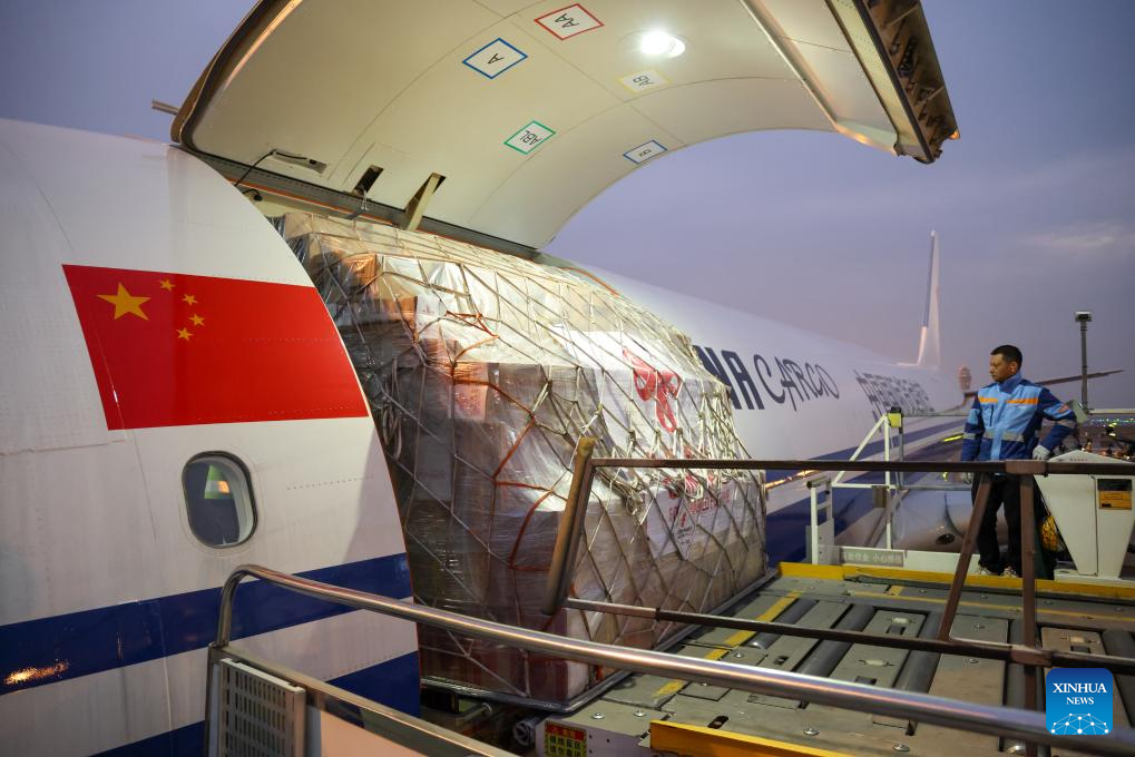 A flight carrying emergency relief supplies prepares to depart from Shenzhen Baoan International Airport in Shenzhen, south China's Guangdong Province, Jan. 1, 2025.(Xinhua/Liang Xu)