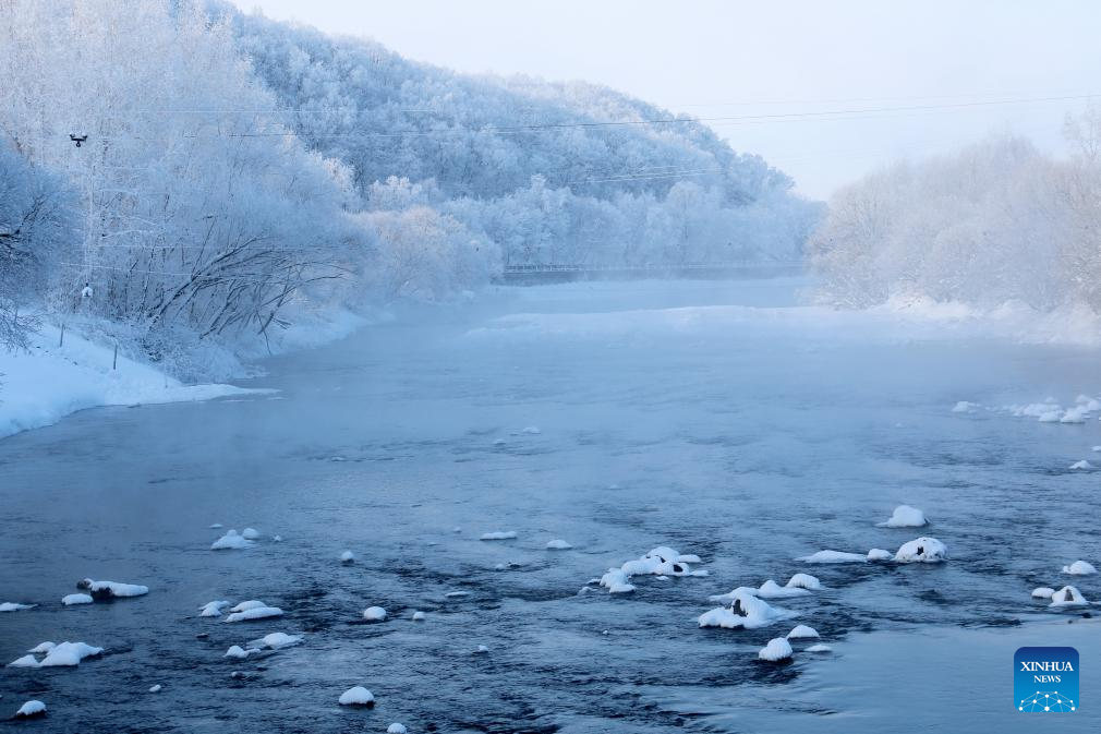 This photo taken on Jan. 4, 2025 shows rime scenery at a scenic spot in Wudalianchi, northeast China's Heilongjiang Province. (Photo by Lu Wenxiang/Xinhua)