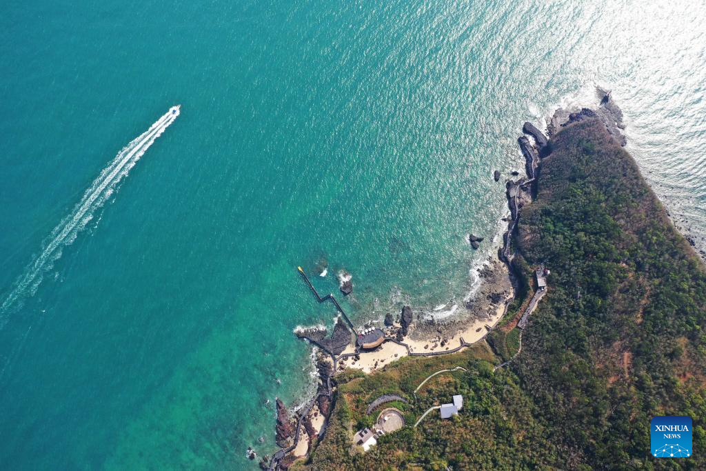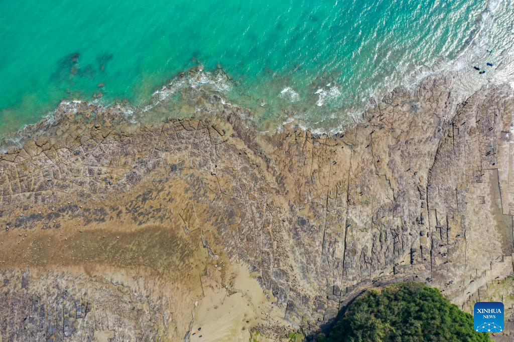 An aerial drone photo taken on Jan. 19, 2025 shows a view of Weizhou Island in south China's Guangxi Zhuang Autonomous Region. Weizhou Island, located in the Beibu Gulf, is China's youngest volcanic island. In recent years, the local government has strengthened marine ecological protection and developed infrastructure on the island, making it a popular tourist destination. (Xinhua/Jin Haoyuan)