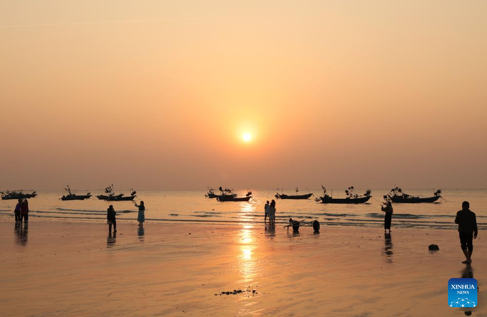 This photo taken on Jan. 5, 2025 shows a view of Weizhou Island at sunset in south China's Guangxi Zhuang Autonomous Region. Weizhou Island, located in the Beibu Gulf, is China's youngest volcanic island. In recent years, the local government has strengthened marine ecological protection and developed infrastructure on the island, making it a popular tourist destination. (Xinhua/Jin Haoyuan)