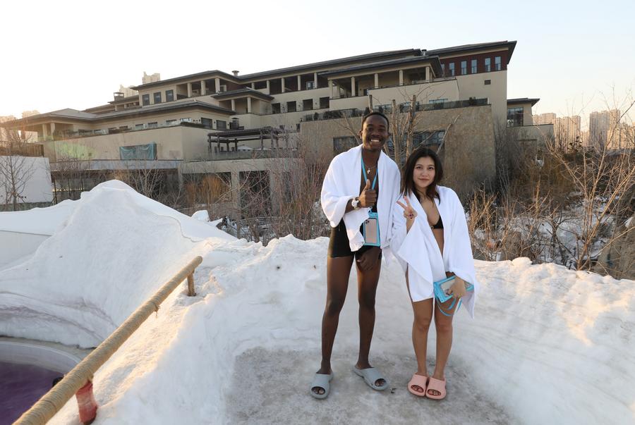 SHENYANG, Jan. 23 (Xinhua) -- May Thet Hnynn from Myanmar and Kameni from Cameroon, both international students at Liaoning University, experience hot spring at a resort in Shenyang, northeast China's Liaoning Province, ahead of the Harbin 2025 Asian Winter Games. Let's join them!