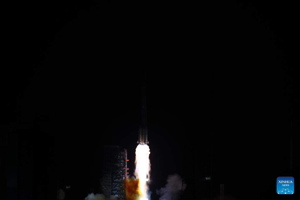 A Long March-3B rocket carrying a test satellite for communication technology blasts off from the Xichang Satellite Launch Center in southwest China's Sichuan Province, Jan. 23, 2025. The satellite was launched at 11:32 p.m. (Beijing Time) and entered the planned orbit successfully. (Photo by Ma Yongtao/Xinhua)