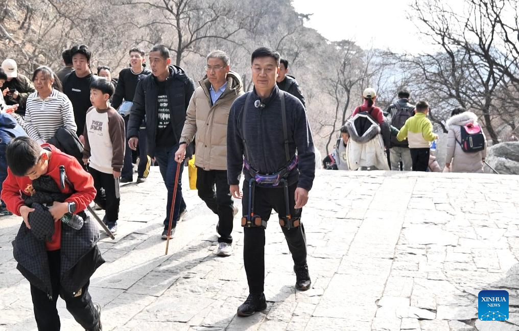 JINAN, Feb. 10 (Xinhua) -- During this year's Spring Festival, Mount Tai in east China's Shandong Province, one of the most iconic mountains in the country, introduced an innovative exoskeleton robot.