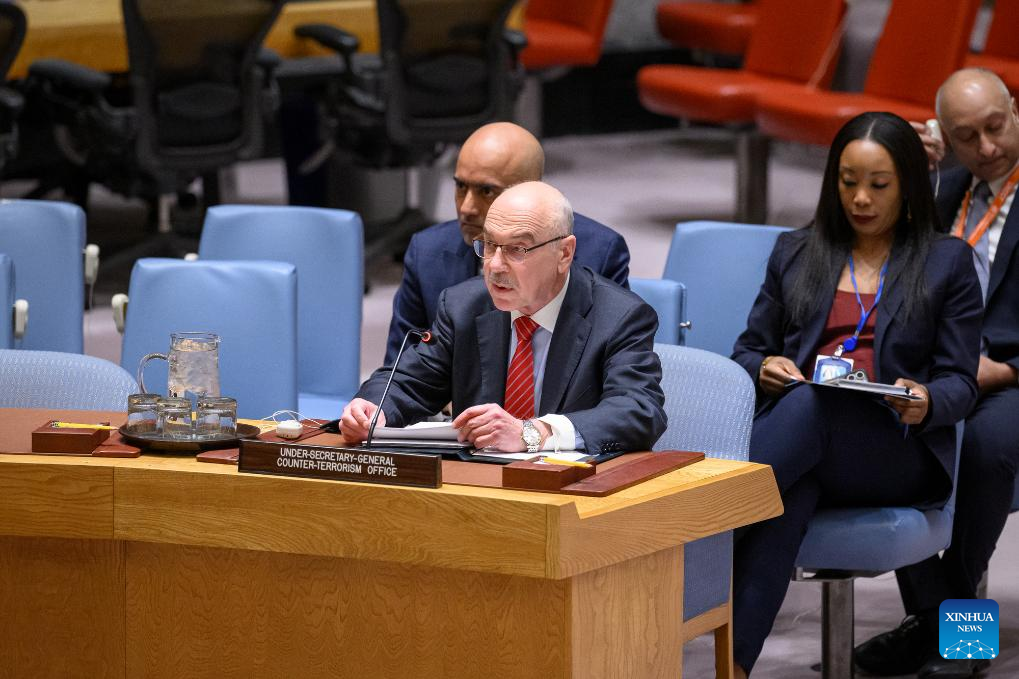 The UN Security Council meeting on threats to international peace and security caused by terrorist acts is held at the UN headquarters in New York, Feb. 10, 2025. The Islamic State (IS) terrorist group remains a serious global security threat and multilateral cooperation is essential to combatting terrorism effectively, the UN's top counter-terrorism official said on Monday. (Manuel Elias/UN Photo/Handout via Xinhua)