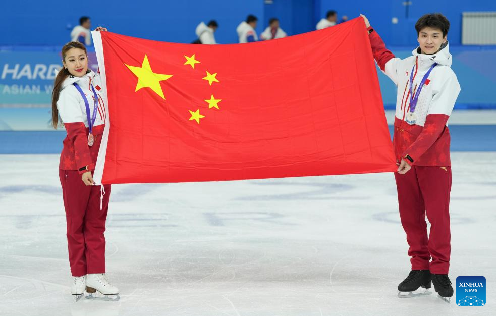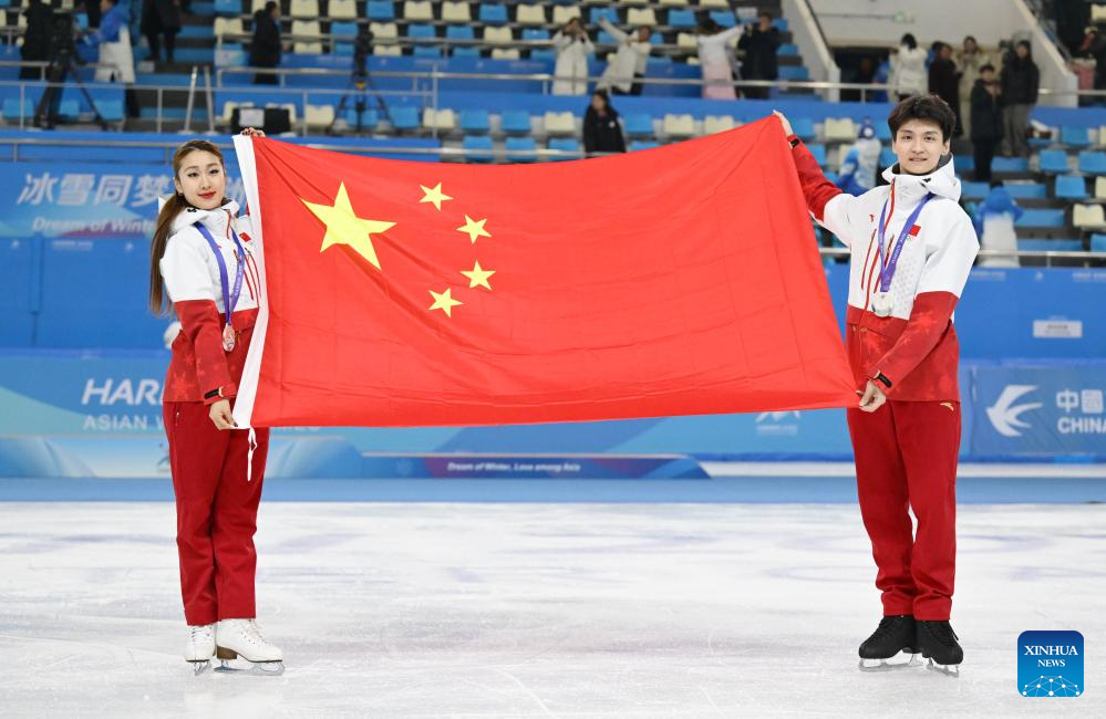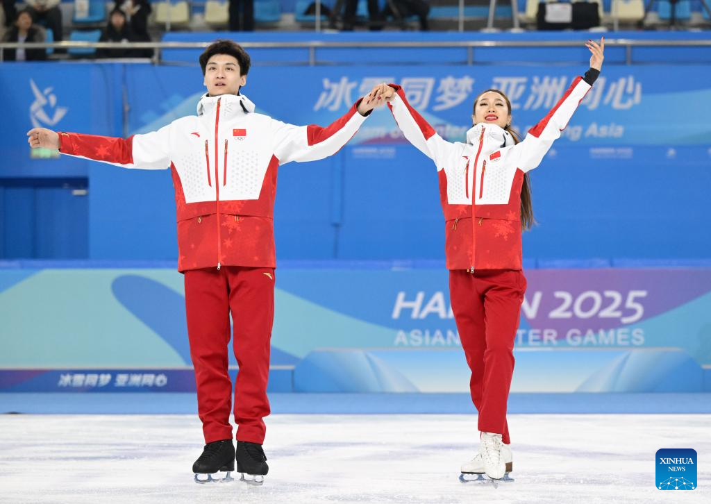 HARBIN, Feb. 12 (Xinhua) -- Ren Junfei and Xing Jianing secured China's first figure skating medal in the ice dance event at the Harbin Asian Winter Games, while Cidanyuzhen and Buluer led Chinese skiers to a podium sweep in the ski mountaineering mixed relay on Wednesday.