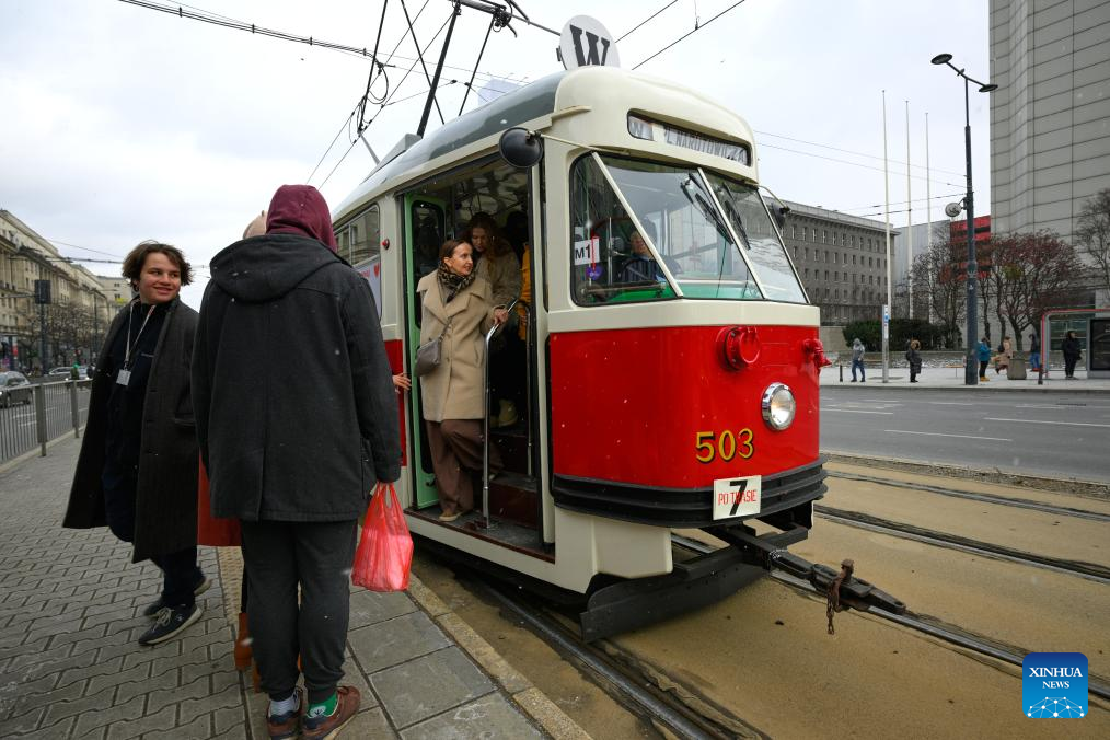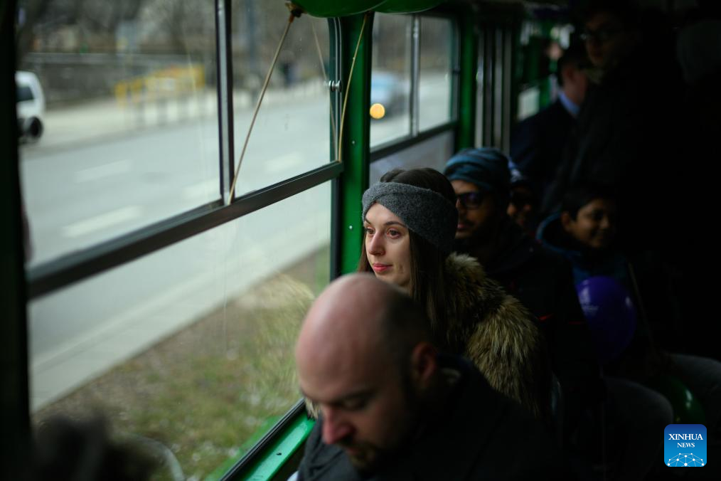 The 66-year-old tram operated from Feb. 14 to 16 in the city, drawing passengers to enjoy the romantic trip. (Photo by Jaap Arriens/Xinhua)