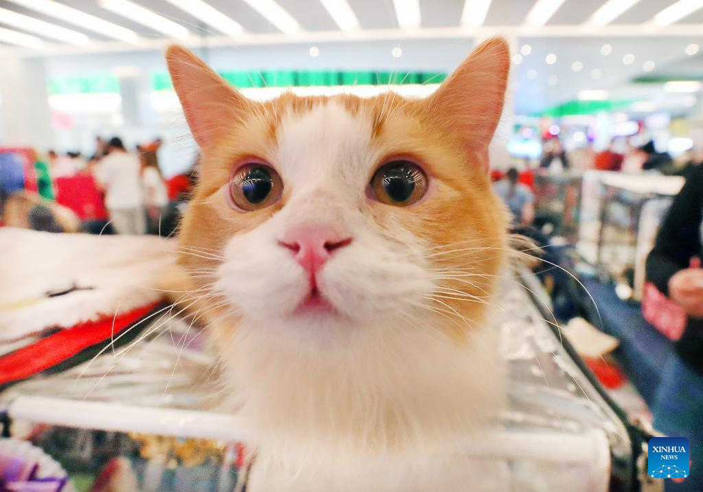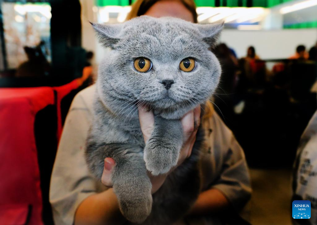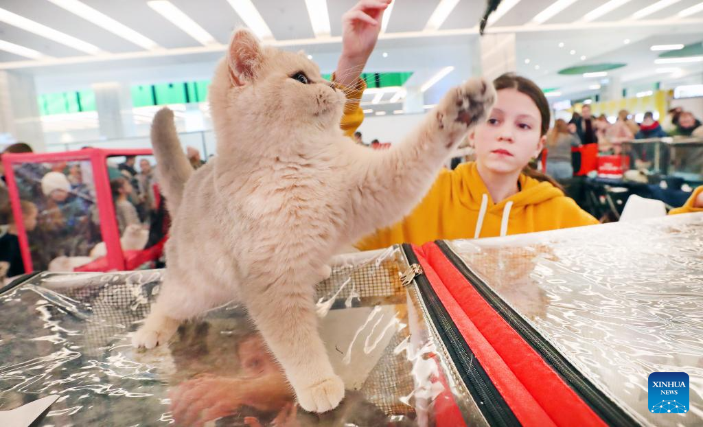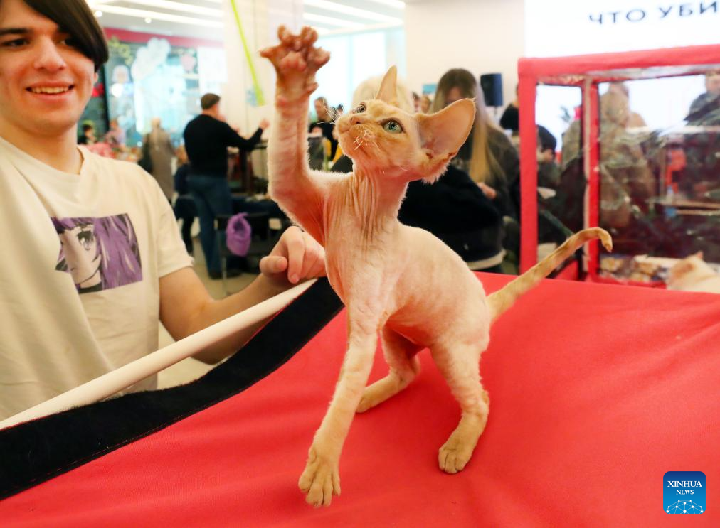 People visit an international cat show held in Minsk, Belarus, Feb. 16, 2025. (Photo by Henadz Zhinkov/Xinhua)