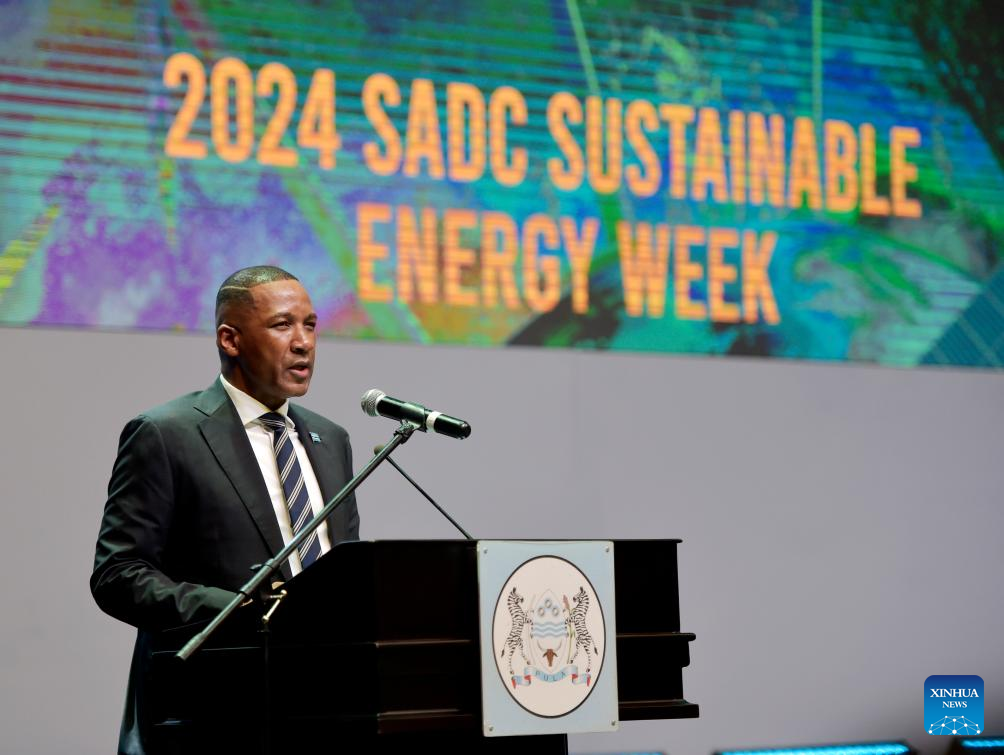 Botswanan President Duma Boko addresses the opening of the Southern African Development Community (SADC) Sustainable Energy Week in Gaborone, Botswana, Feb. 24, 2025. Under the theme of "Accelerating Sustainable Energy Solutions for an Energy Secure SADC Region," the SADC Sustainable Energy Week kicked off on Monday. (Photo by Tshekiso Tebalo/Xinhua)