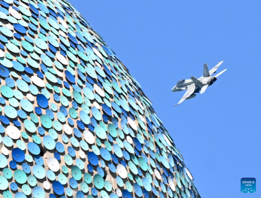 A Kuwaiti Air Force aircraft flies in celebration of the Independence Day and the Liberation Day over Kuwait City, Kuwait, on Feb. 25, 2025. (Photo by Asad/Xinhua)