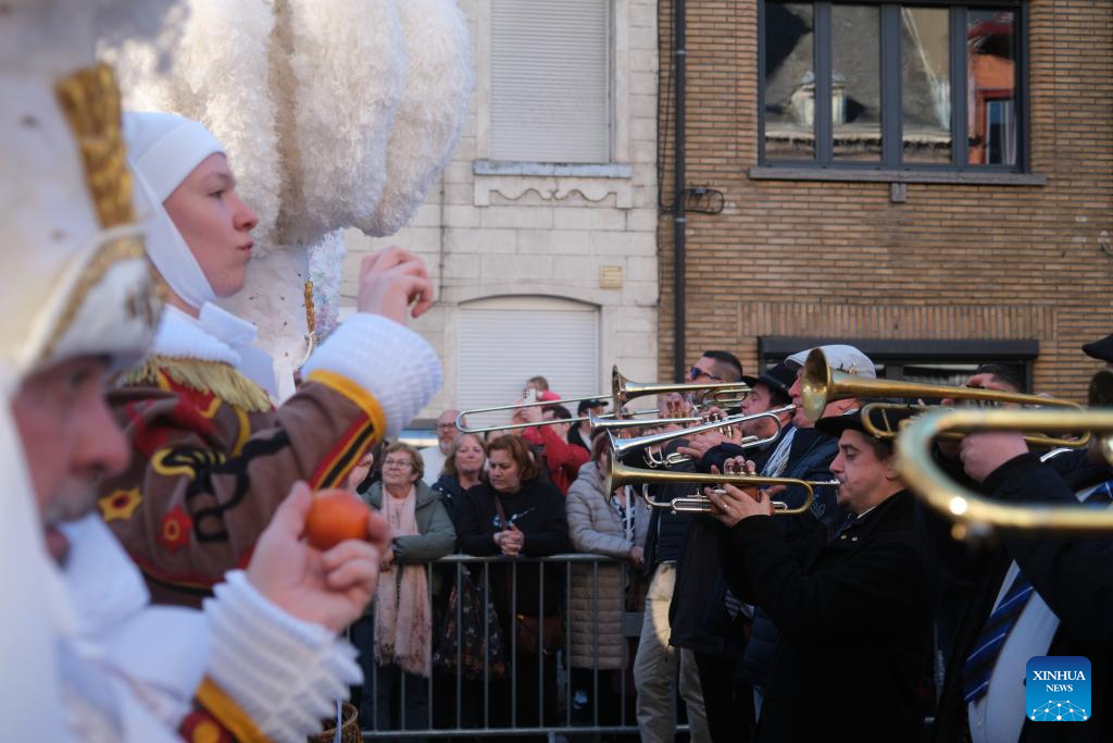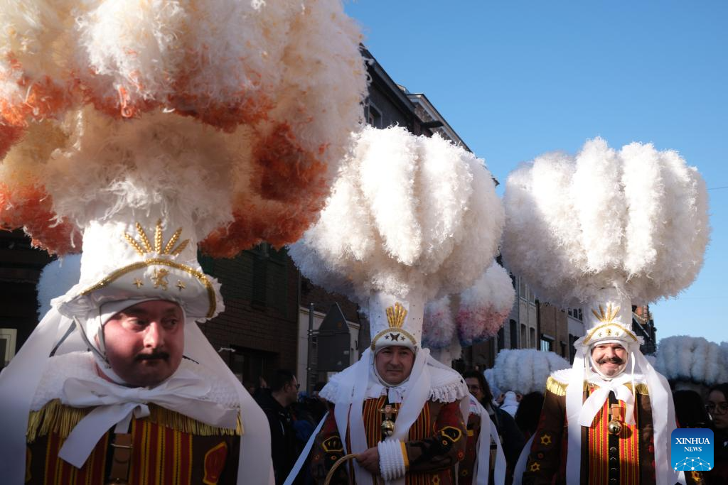 Revellers attend the Binche Carnival, a UNESCO World Heritage event, in Binche, Belgium, March 4, 2025. (Xinhua/Meng Dingbo)