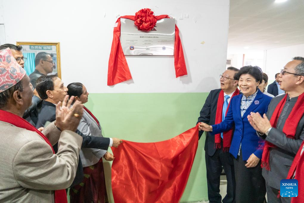 Guests unveil a plaque of the China-Nepal "Lifeline Express" Center of Cooperation for the Prevention of Blindness in Kathmandu, Nepal, March 7, 2025. (Photo by Hari Maharjan/Xinhua)