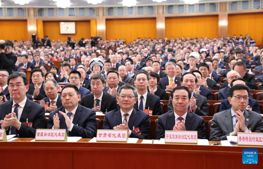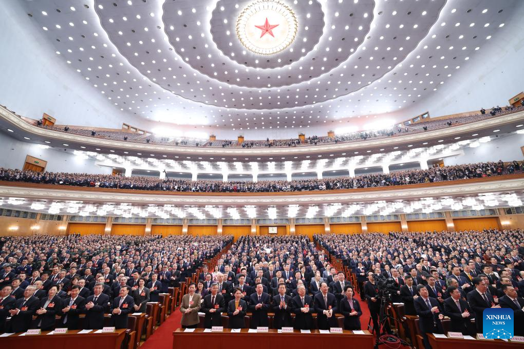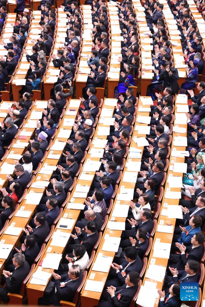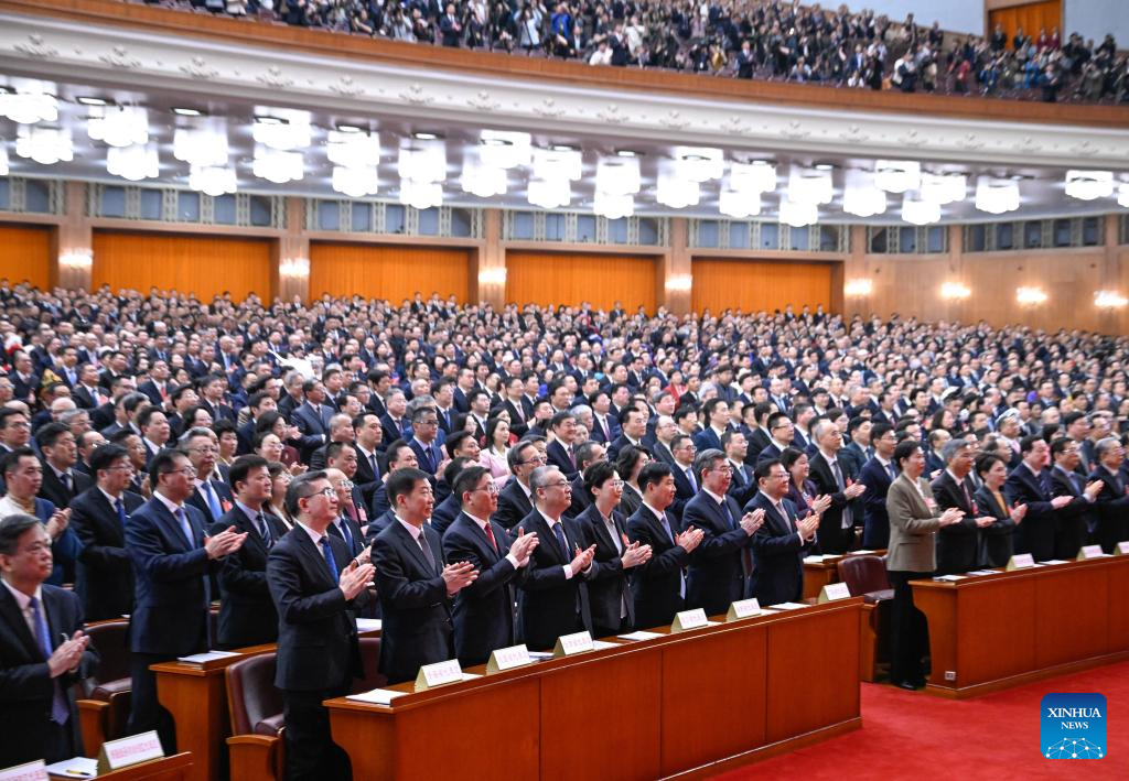 The second plenary meeting of the third session of the 14th National People's Congress (NPC) is held at the Great Hall of the People in Beijing, capital of China, March 8, 2025. (Xinhua/Zhai Jianlan)