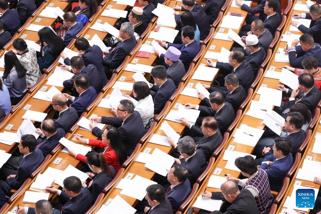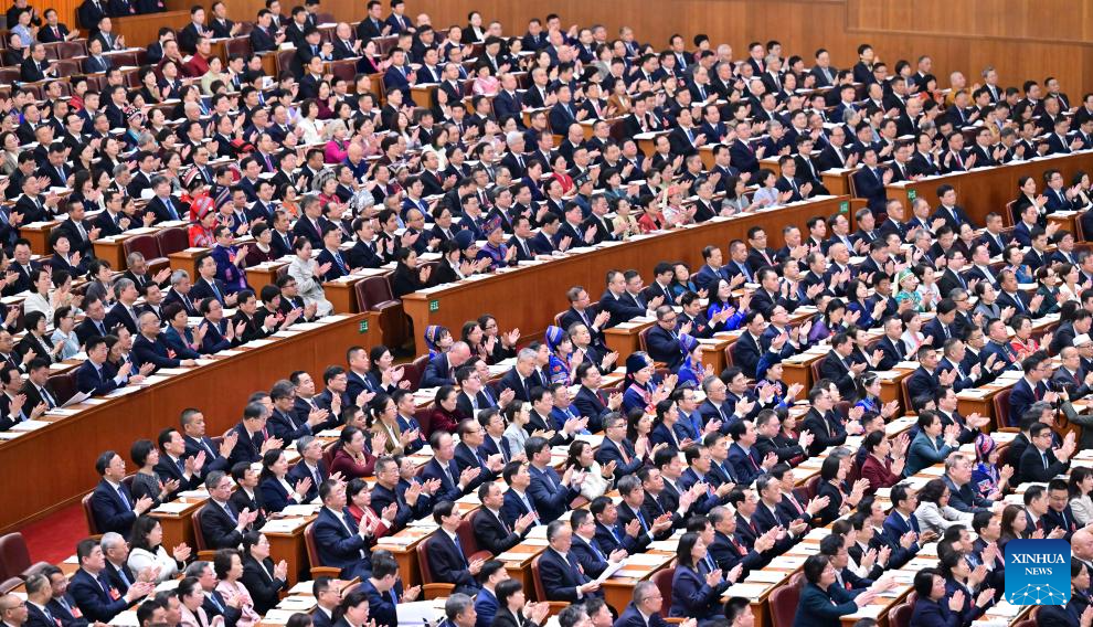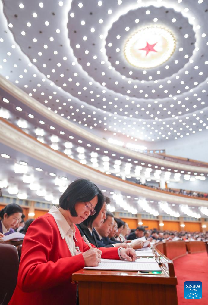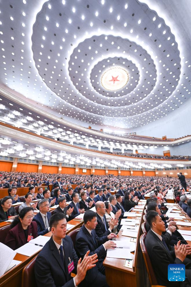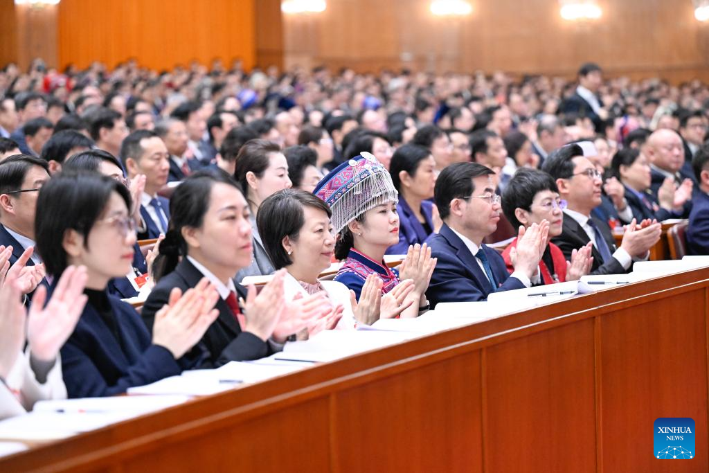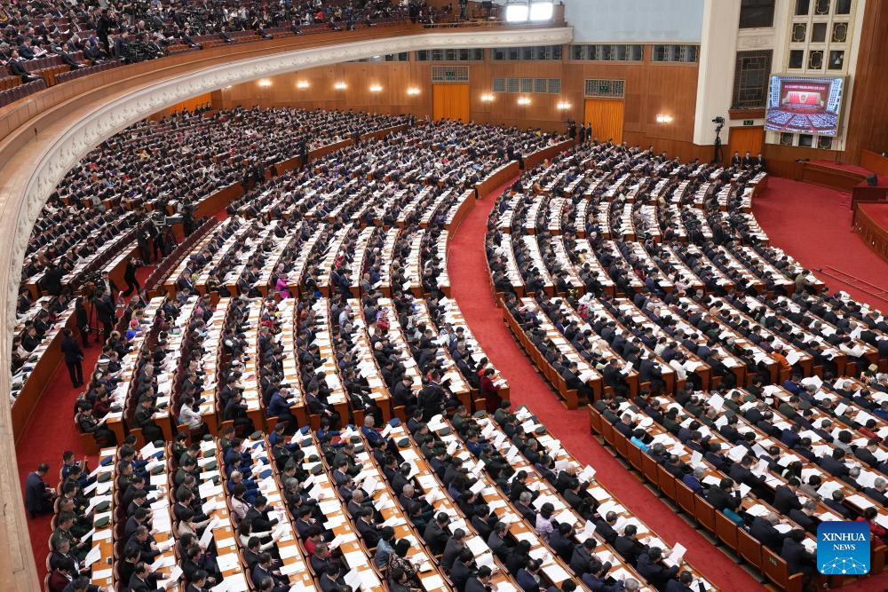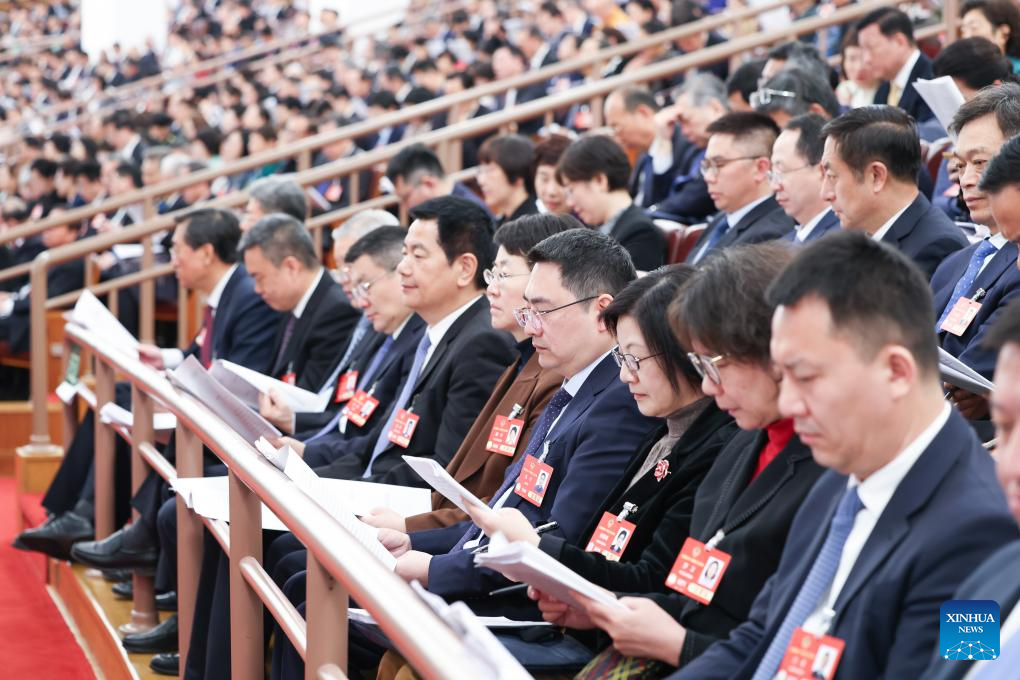 The second plenary meeting of the third session of the 14th National People's Congress (NPC) is held at the Great Hall of the People in Beijing, capital of China, March 8, 2025. (Xinhua/Lu Ye)