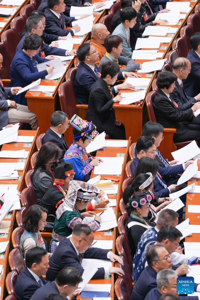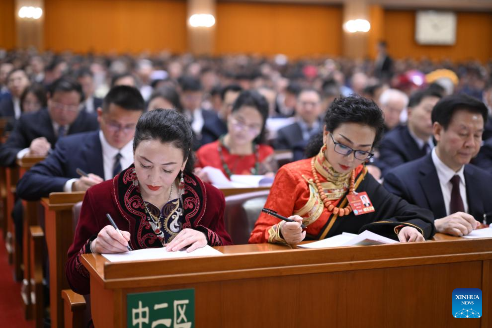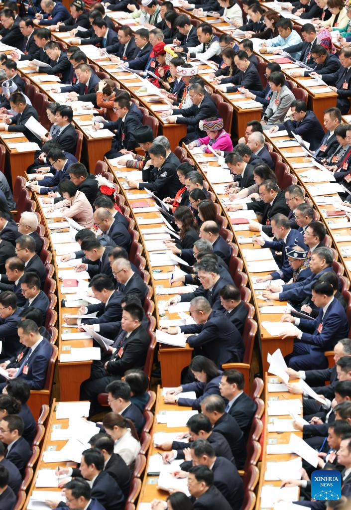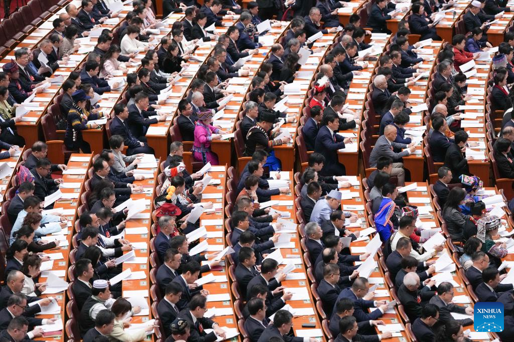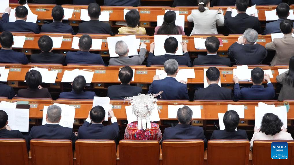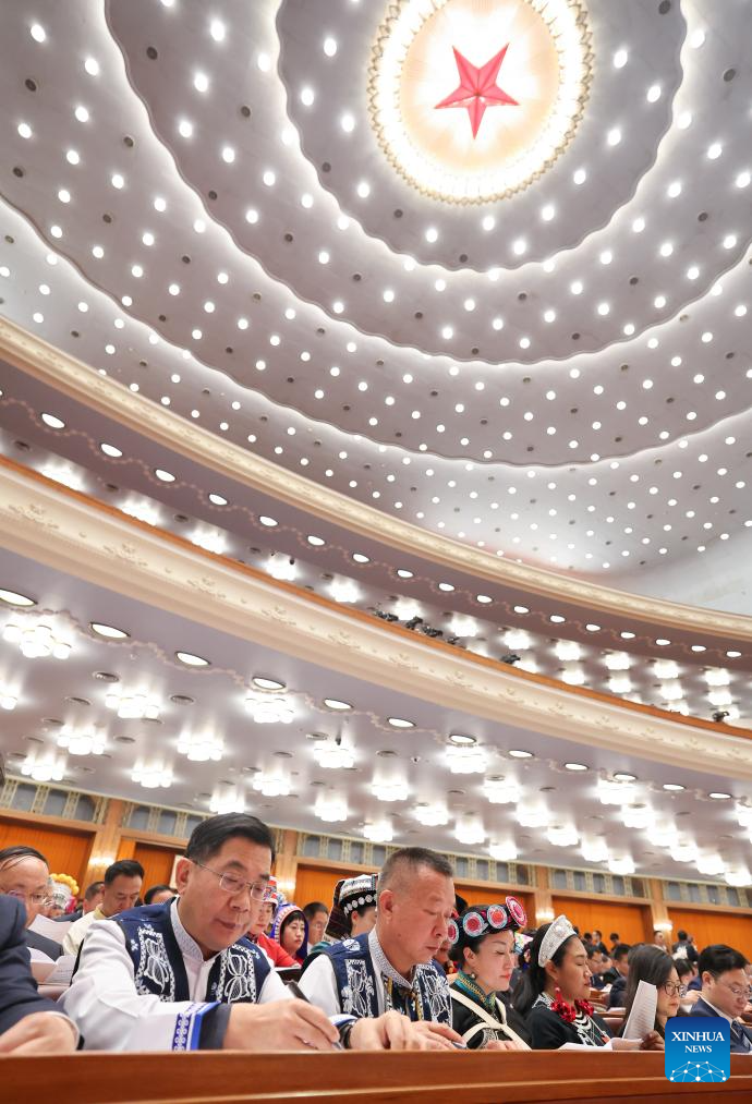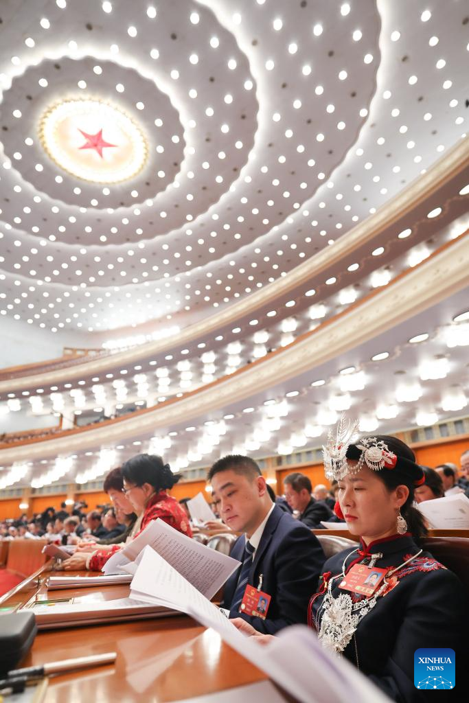The second plenary meeting of the third session of the 14th National People's Congress (NPC) is held at the Great Hall of the People in Beijing, capital of China, March 8, 2025. (Xinhua/Lu Ye)