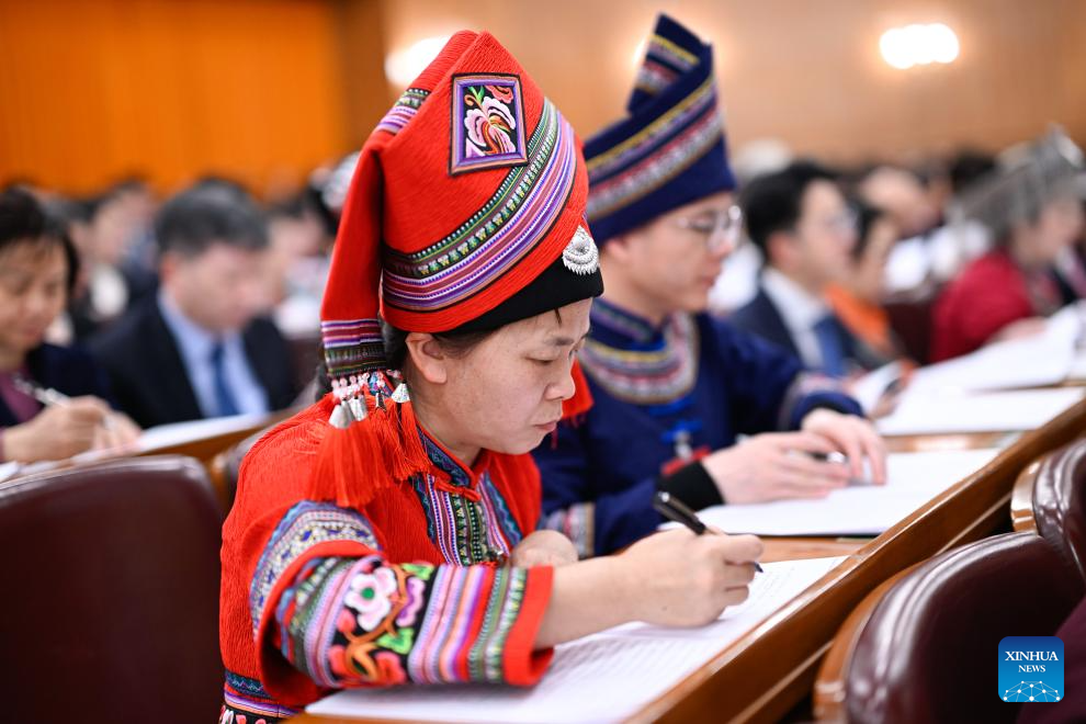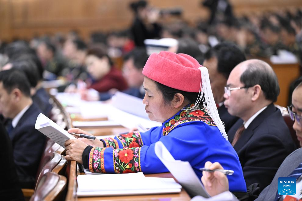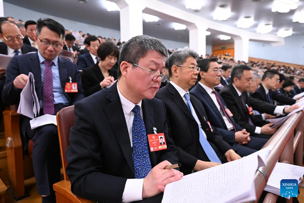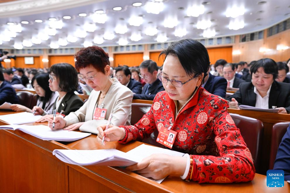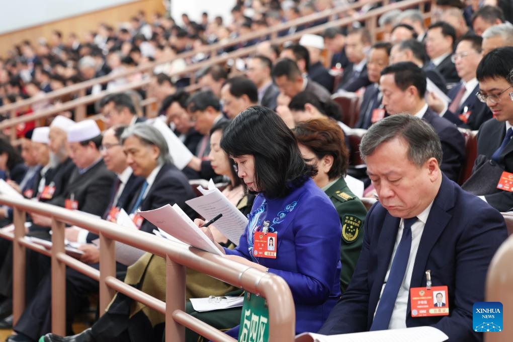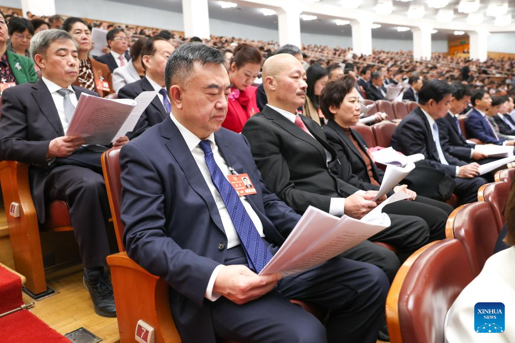 Members of the National Committee of the Chinese People's Political Consultative Conference (CPPCC) sit in on the second plenary meeting of the third session of the 14th National People's Congress (NPC) as non-voting participants at the Great Hall of the People in Beijing, capital of China, March 8, 2025. (Xinhua/Li Xiao)