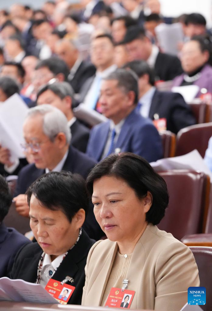 Members of the National Committee of the Chinese People's Political Consultative Conference (CPPCC) sit in on the second plenary meeting of the third session of the 14th National People's Congress (NPC) as non-voting participants at the Great Hall of the People in Beijing, capital of China, March 8, 2025. (Xinhua/Chen Yehua)