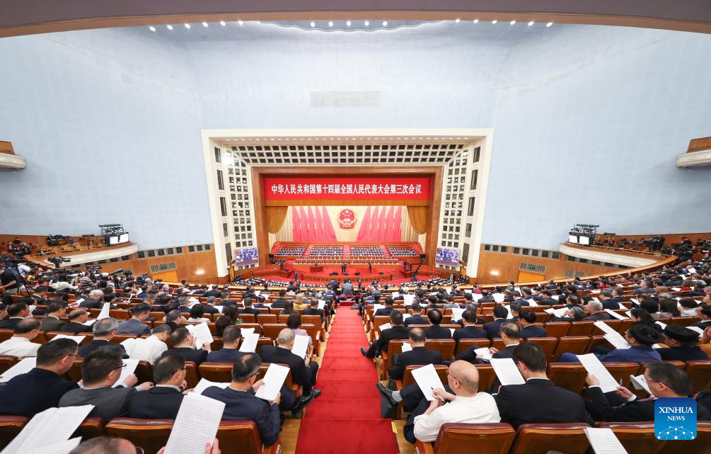 The second plenary meeting of the third session of the 14th National People's Congress (NPC) is held at the Great Hall of the People in Beijing, capital of China, March 8, 2025. (Xinhua/Pang Xinglei)