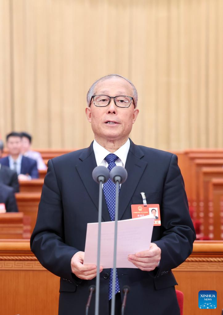 Supreme People's Procuratorate (SPP) Procurator-general Ying Yong delivers a work report of the SPP at the second plenary meeting of the third session of the 14th National People's Congress (NPC) at the Great Hall of the People in Beijing, capital of China, March 8, 2025. (Xinhua/Li Xiang)