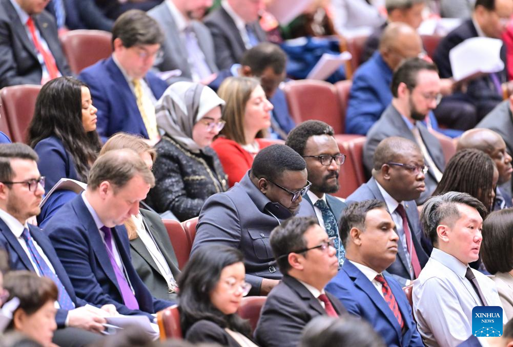 Foreign diplomatic envoys to China attend the second plenary meeting of the third session of the 14th National People's Congress (NPC) as observers at the Great Hall of the People in Beijing, capital of China, March 8, 2025. (Xinhua/Zhai Jianlan)