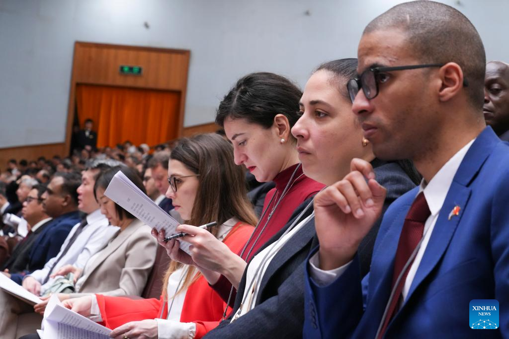 Foreign diplomatic envoys to China attend the second plenary meeting of the third session of the 14th National People's Congress (NPC) as observers at the Great Hall of the People in Beijing, capital of China, March 8, 2025. (Xinhua/Liu Bin)