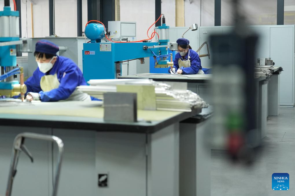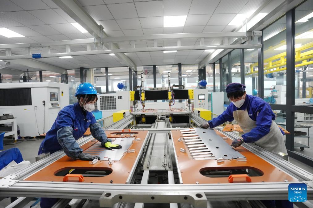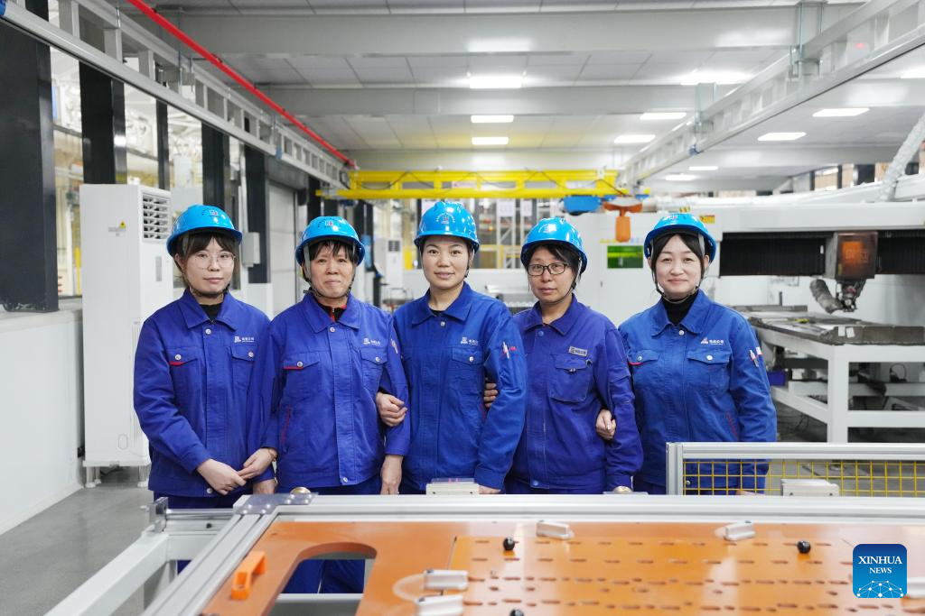 Female welders perform automatic resistance spot welding at a factory of Harbin Electric Machinery Company Limited under Harbin Electric Corporation in Harbin, northeast China's Heilongjiang Province, March 7, 2025. (Xinhua/Wang Song)