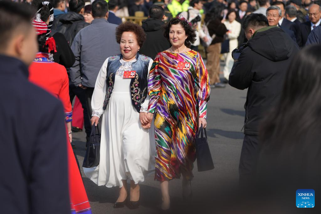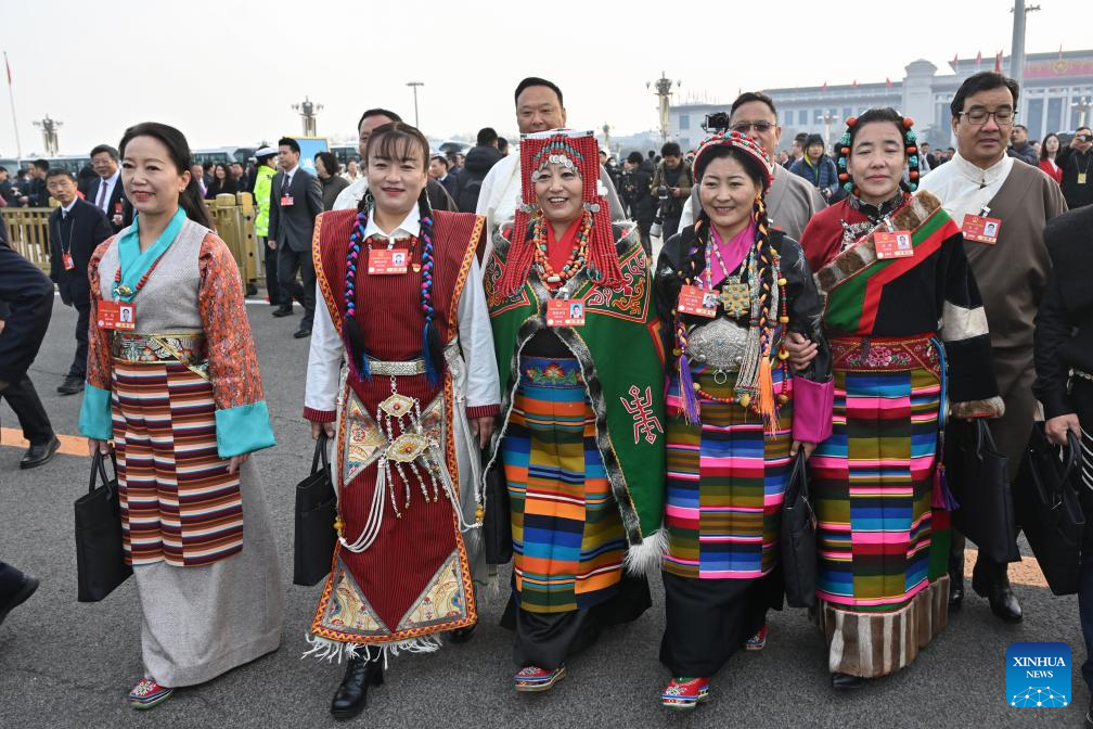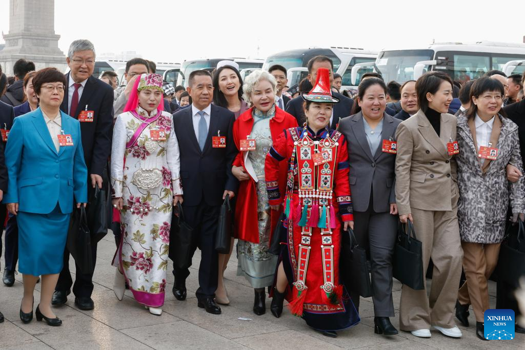 Deputies to the 14th National People's Congress (NPC) walk towards the Great Hall of the People for the opening meeting of the third session of the 14th NPC in Beijing, capital of China, March 5, 2025.