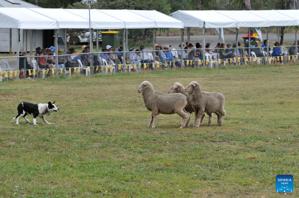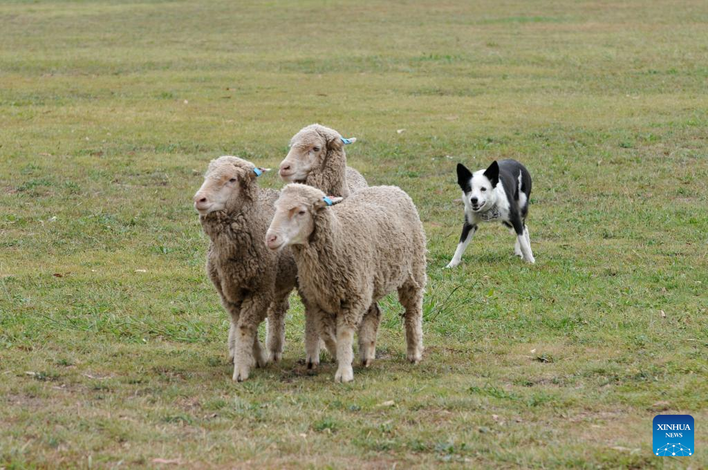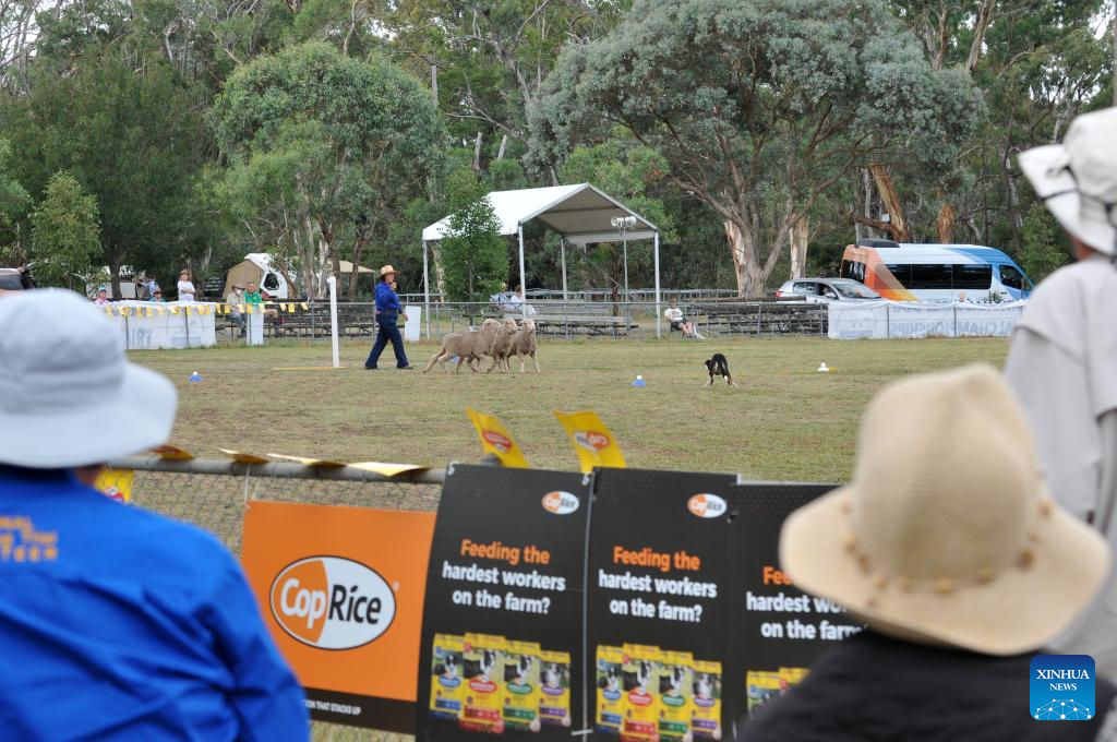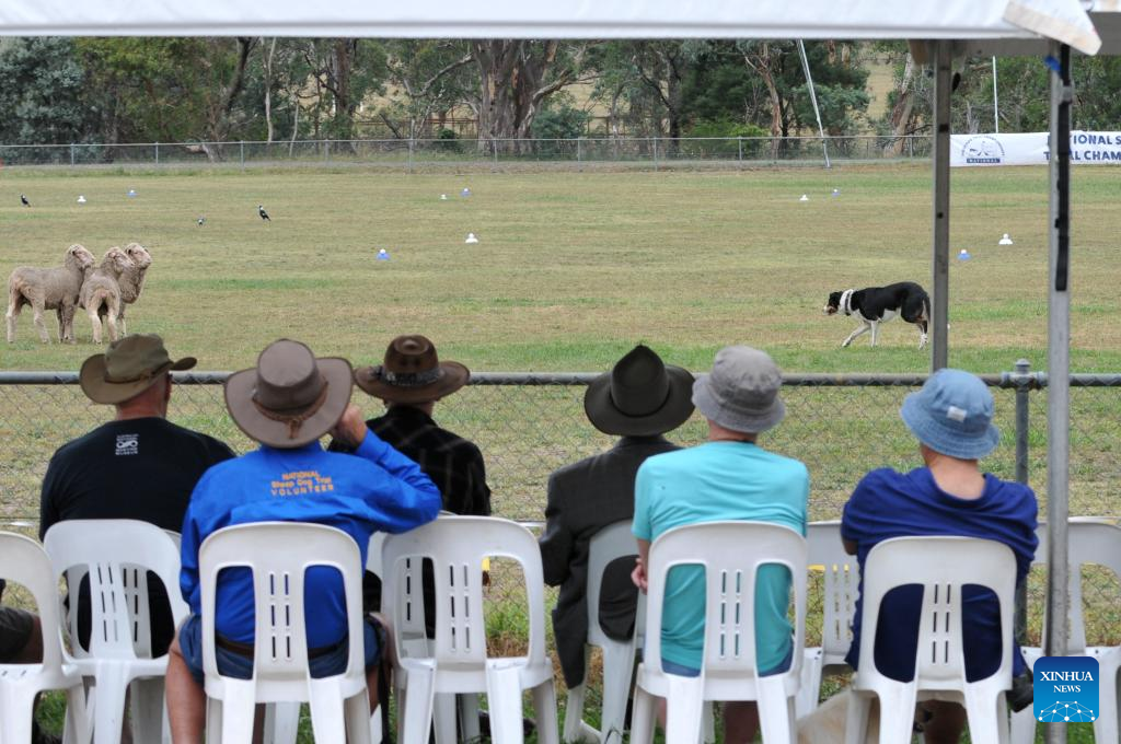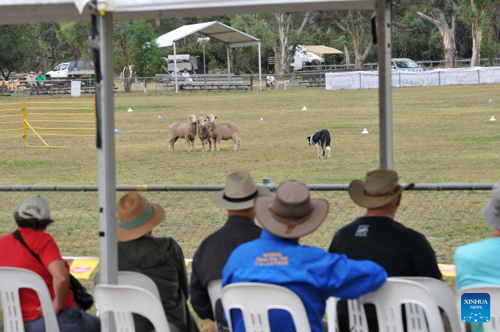 A sheep dog competes during the National Sheepdog Trial Championships held in Canberra, Australia, March 11, 2025. The ongoing National Sheepdog Trial Championships kicked off on March 10 and will last until March 16. (Photo by Zhang Na/Xinhua)